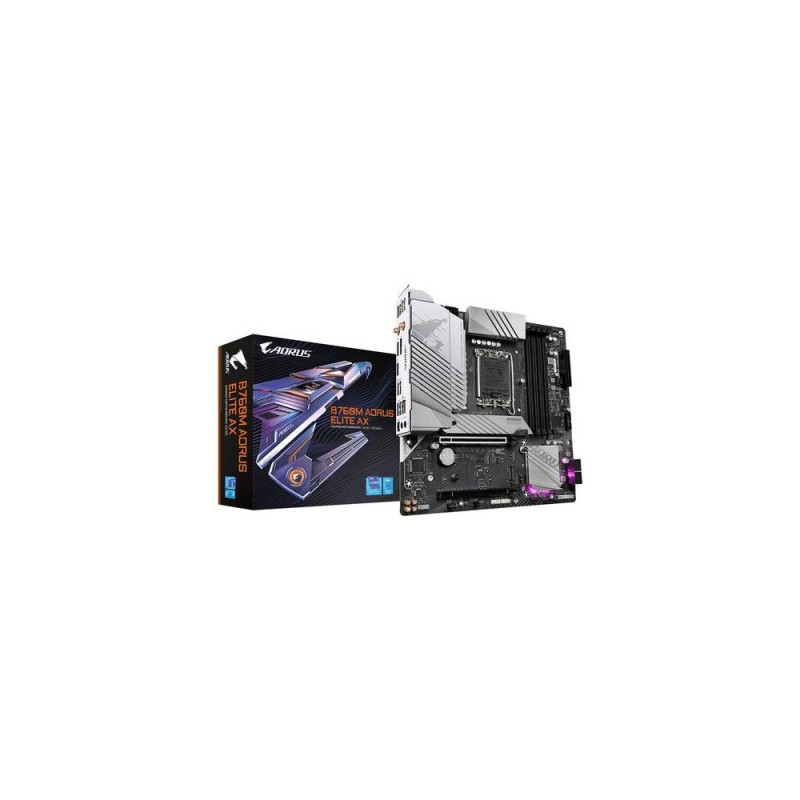 Elevate your computing experience with GIGABYTE's renowned motherboard series: AORUS, AERO, and GIGABYTE. Featuring innovative designs and advanced features, these boards offer exceptional performance and reliability. Whether you're a gamer, content creator, or professional, our series cater to your needs, ensuring uncompromising quality and cutting-edgeGIGABYTE B760M AORUS ELITE AX Motherboard - Supports Intel Core 14th Gen CPUs, 12*+1+1 Phases Digital VRM, up to 7800MHz DDR5 (OC), 2xPCIe 4.0 M.2, Wi-Fi 6E, 2.5GbE LAN, USB 3.2 Gen 2. Processor manufacturer: Intel, Processor socket: LGA 1700, Compatible processor series: Intel® Celeron®, Intel® Core™ i3, Intel® Core™ i5, Intel® Core™ i7, Intel® Core™ i9,.... Supported memory types: DDR5-SDRAM, Maximum internal memory: 256 GB, Memory slots type: DIMM. Supported storage drive interfaces: M.2, SATA III, Supported storage drive types: HDD & SSD, RAID levels: 0, 1, 5, 10. Parallel processing technology support: CrossFireX, Maximum resolution: 4096 x 2304 pixels. Ethernet interface type: 2.5 Gigabit Ethernet, 5 Gigabit Ethernet, Top Wi-Fi standard: Wi-Fi 6E (802.11ax), Wi-Fi standards: 802.11a, 802.11b, 802.11g, Wi-Fi 4 (802.11n), Wi-Fi 5 (802.11ac), Wi-Fi 6 (802.11ax), Wi-Fi 6E...