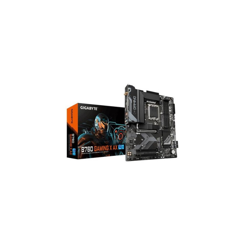 Elevate your computing experience with GIGABYTE's renowned motherboard series: AORUS, AERO, and GIGABYTE. Featuring innovative designs and advanced features, these boards offer exceptional performance and reliability. Whether you're a gamer, content creator, or professional, our series cater to your needs, ensuring uncompromising quality and cutting-edgeGIGABYTE B760 GAMING X AX Motherboard - Supports Intel Core 14th Gen CPUs, 8+1+1 Phases Digital VRM, up to 7600MHz DDR5 (OC), 3xPCIe 4.0 M.2, Wi-Fi 6E, 2.5GbE LAN, USB 3.2 Gen 2. Processor manufacturer: Intel, Processor socket: LGA 1700, Compatible processor series: Intel® Celeron®, Intel® Core™ i3, Intel® Core™ i5, Intel® Core™ i7, Intel® Core™ i9,.... Supported memory types: DDR5-SDRAM, Maximum internal memory: 256 GB, Memory slots type: DIMM. Supported storage drive interfaces: M.2, SATA III, Supported storage drive types: HDD & SSD, RAID levels: 0, 1, 5, 10. Maximum resolution: 4096 x 2304 pixels. USB connector type: USB Type-A, USB Type-C