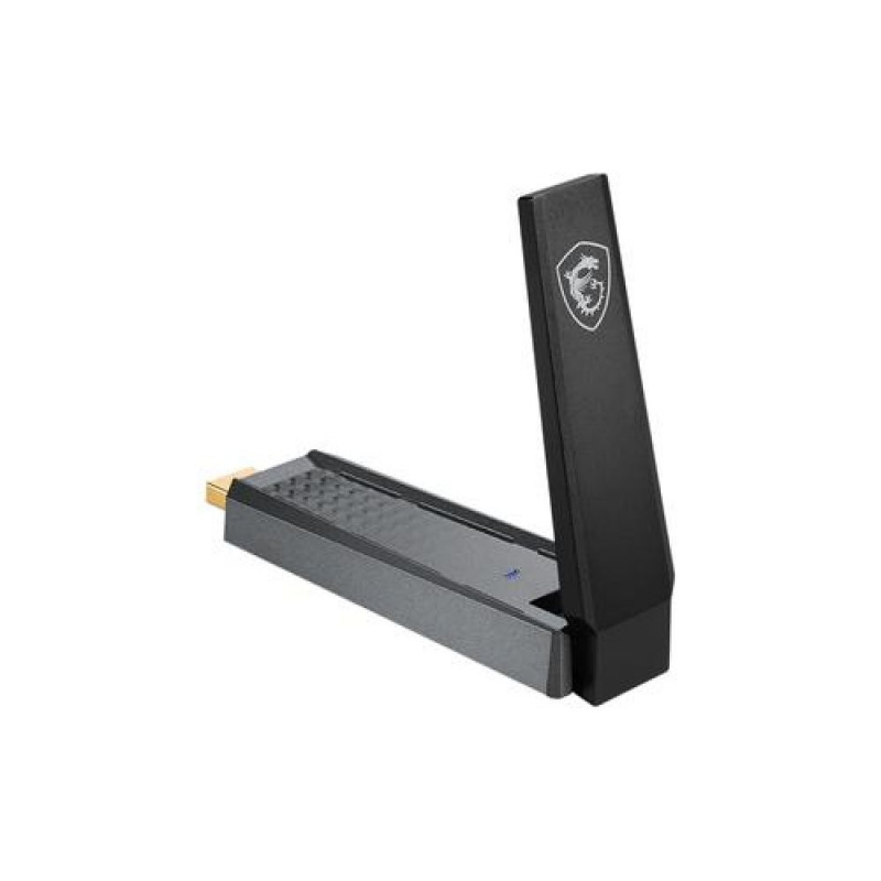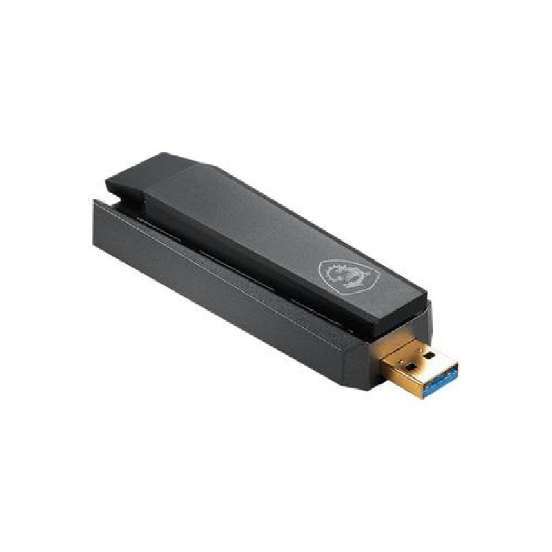 <b>FASTER SPEED, LESS DELAY</b><br>Easily upgrade your PC or laptop to WiFi 6 and boost transfer speeds up to 1800 Mbps. Enjoy gaming, streaming, and web meetings throughout your home.<br><br><b>RELIABLE CONNECTION WITH WIDER RANGE</b><br>Thanks to beamforming technology, a router can focus the signal direction to the MSI AX1800 WiFi USB adapter to maintain a stronger connection. And MSI FIRST shorten the latency when MSI WiFi USB adapter works with MSI gaming router.<br><br><b>Flexible positioning</b><br><b>as you need</b><br>An included cradle and flappable antenna design let you place the adapter where its needed.<br><br><b>MULTIPLE OS SUPPORT</b><br>Easy to install on a wide variety of operating systems, making it the smart choice for any laptop or PC.MSI AX1800 WiFi USB Adapter. Host interface: USB Type-A, Output interface: USB 2.0, Host interface gender: Male. Product colour: Black. Width: 102 mm, Depth: 30 mm, Height: 19 mm. Quantity per pack: 1 pc(s). Connectivity technology: Wireless, Frequency range: 2.4GHz / 5GHz