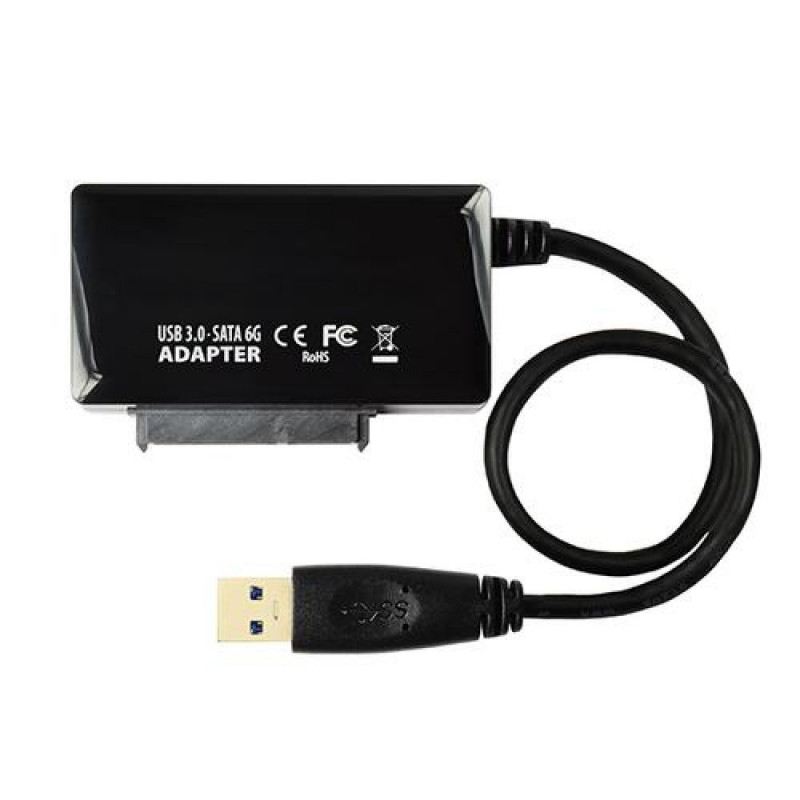 The universal all-in-one AXAGON ADSA-FP3FASTport3 adapter with USB 3.0 and SATA 6G interface for easy connection of any SATA disk or drive.<br><br>Supports all types of 2.5" HDD / SSD, 3.5" hard disks and 5.25" optical CD, DVD or Blu-ray drives.<br><br>It deals with all SATA, SATA II and SATA III disks without limiting maximum capacity.<br><br>The current SATA III / 6G interface allows to use the speed of modern SSD disks.<br><br>Reading of S.M.A.R.T. information monitoring the condition of the connected disks. Supports spinning down of connected disks as well as an adapter.<br><br>The installation can be handled even by a layman - the disk connects to the adapter and the adapter to the computer's USB port; the rest is done automatically.<br><br>The adapter with 2.5" HDD/SSD is just enough to power on the USB bus, no need to handle the network-based feeder.<br><br>Features:<br>• Compatible with USB 3.0 and backward compatible with USB 2.0.<br>• Supports transmission rates 12 / 480 / 5000 Mb/s (low / full / high speed).<br>• Supports 2.5" and 3.5" SATA III/II/I disks without limiting maximum capacity.<br>• Compliant with Serial ATA 3.1 specification (SATA/600), transmission rates of up to 6 Gb/s.<br>• Compliant with Serial ATA 2.0 specification (SATA/300), transmission rates of up to 3 Gb/s (300 MB/s).<br>• Compliant with Serial ATA 1.0 specification (SATA/150), transmission rates of up to 1.5 Gb/s (150 MB/s).<br>• The total bandwidth / transmission rate of the adapter is determined by the USB 3.0 interface used (theor. 5 Gbit/s).<br>• Supports booting from SSD/HDD connected via an USB adapter.<br>• HDD Auto Spindown - automatic spindown of a disk after period of inactivity lasting 15 minutes.<br>• HDD Turn Off - turns off the disk after removing the device or spinning down the PC.<br>• Possibility to connect your device while running thanks to the Hot Plug support.<br>• Full Plug and Play support.<br>• Connection via direct USB 3.0 Type A male connector on a 22 cm long cable that is permanently connected to the adapter. <br>• A blue, decently bright LED indicating the connection of USB power supply (permanent light) and data transmission (blinking).<br>• Supplying the power via USB 3.0 bus up to 900mA from one USB port is sufficient for 2.5" HDD / SSD.<br>• To supply power to an adapter with 3.5" disk or optical drive, a compact external AC/DC adapter 12V - 2A (24W) with supply cable approx. 150 cm long is included.<br>• USB adapter dimensions 71 x 44.5 x 14.3 mm.<br>• Adapter weight only 38 g, incl. USB cable.<br><br>Supported OSs:<br>• MS Windows XP / Vista / 7 / 8 / 8.1 / 10 and later, Windows Server 2003 / 2008 / 2012 / 2016 and later (supported are all 32- and 64-bit Windows OS versions), Mac OS X 10.x and higher, Linux with kernel 2.6.x and above.<br>• Note: Drivers are included with supported operating systems and are installed completely automatically. No other drivers need to be installed and are not even available. <br><br>Package contains:<br>• USB 3.0 - SATA adapter with permanently connected 22 cm long cable,<br>• power adapter 100-240V / 12V-2.2A,<br>• packed in a cardboard box with the installation procedure included.Axagon ADSA-FP3. Host interface: USB Type-A, Output interface: SATA, Host interface gender: Male. Product colour: Black, Purpose: PC / Notebook / Tablet, Country of origin: China. Data transfer rate (max): 5 Gbit/s. Output voltage: 12 V. Width: 71 mm, Depth: 46 mm, Height: 14.3 mm