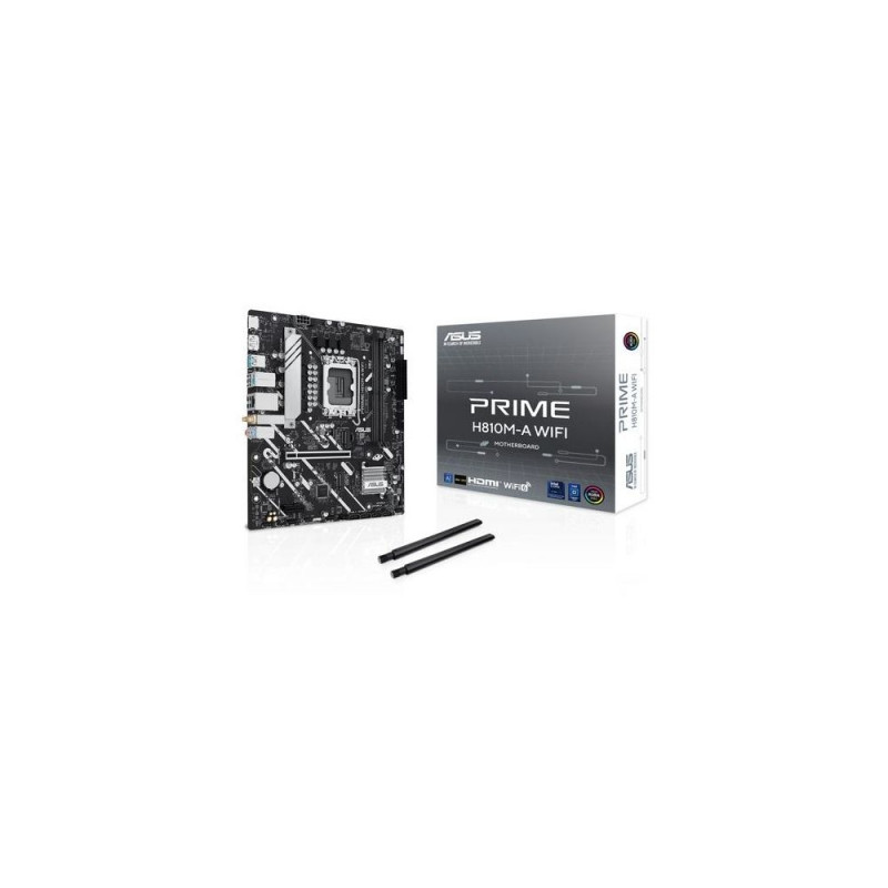 <b>H810M-A WIFI</b><br>ASUS PRIME series motherboards are expertly engineered to unleash the full potential of the latest Intel® Core™ Ultra Processors (Series 2). Boasting a robust power design, comprehensive cooling solutions and intelligent tuning options, the PRIME H810M-A WIFI motherboard provides users and PC DIY builders with a range of performance optimizations via intuitive software and firmware features. It’s designed to be Advanced AI PC-ready, offering the power and connectivity needed for demanding AI applications.ASUS PRIME H810M-A WIFI. Processor manufacturer: Intel, Processor socket: LGA 1851 (Socket V1), Compatible processor series: Intel Core Ultra (Series 2). Supported memory types: DDR5-SDRAM, Maximum internal memory: 128 GB, Memory slots type: DIMM. Supported storage drive interfaces: M.2, SATA III, Supported storage drive types: HDD & SSD, RAID levels: 0, 1, 5, 10. Ethernet interface type: Gigabit Ethernet, Top Wi-Fi standard: Wi-Fi 6 (802.11ax), Wi-Fi standards: Wi-Fi 6 (802.11ax). Component for: PC, Motherboard form factor: micro ATX, Motherboard chipset family: Intel