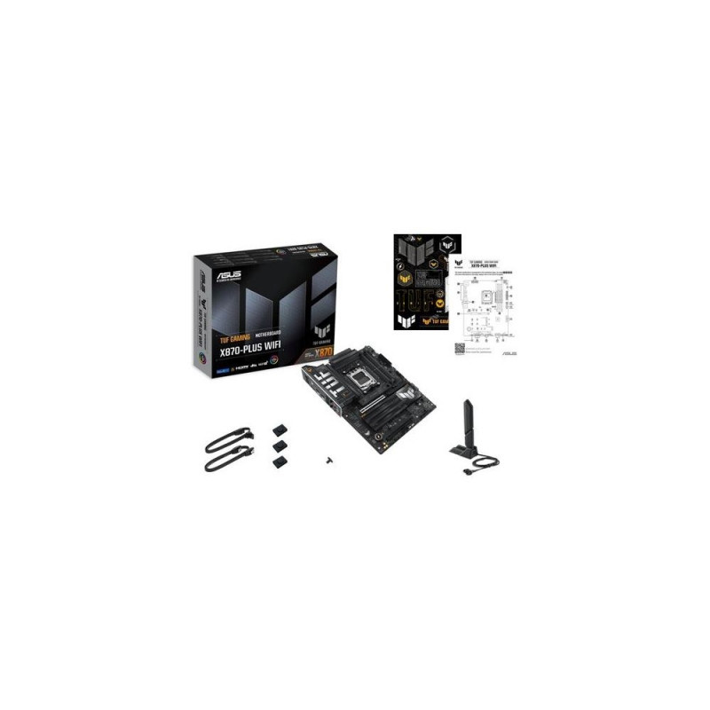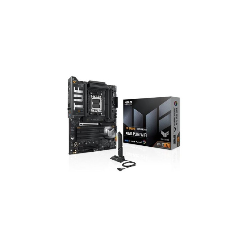 <b>TUF GAMING X870-PLUS WIFI</b><br>ASUS TUF GAMING X870-PLUS WIFI takes all the essential elements of the latest AMD Ryzen™ processors and combines them with game-ready features and proven durability. Engineered with military-grade components, an upgraded power solution and a comprehensive cooling system, this motherboard goes beyond expectations with rock-solid and stable performance for marathon gaming. TUF GAMING motherboards also undergo rigorous endurance testing to ensure that they can handle conditions where others may fail. This platform delivers the power and connectivity that advanced AI PC applications demand.ASUS TUF GAMING X870-PLUS WIFI. Processor manufacturer: AMD, Processor socket: Socket AM5, Compatible processor series: AMD Ryzen 7000 Series, AMD Ryzen 8000 Series, AMD Ryzen 9000 Series. Supported memory types: DDR5-SDRAM, Maximum internal memory: 192 GB, Memory slots type: DIMM. Supported storage drive interfaces: M.2, SATA III, Supported storage drive types: HDD & SSD, RAID levels: 0, 1, 5, 10. USB connector type: USB Type-A, USB Type-C. Ethernet interface type: 2.5 Gigabit Ethernet, Fast Ethernet, Gigabit Ethernet, Top Wi-Fi standard: Wi-Fi 7 (802.11be), Wi-Fi standards: Wi-Fi 7 (802.11be)