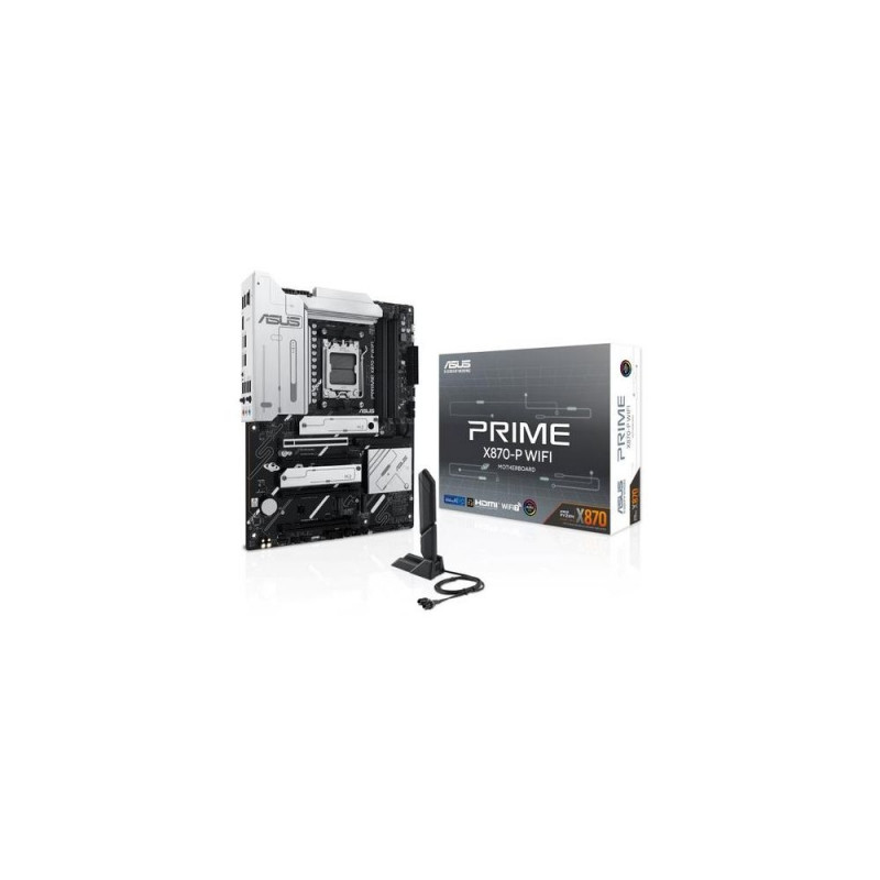 ASUS Prime series motherboards are expertly engineered to unleash the full potential of AMD Ryzen™ 9000 series processors. Boasting a robust power design, comprehensive cooling solutions and intelligent tuning options, the PRIME X870-P WIFI motherboard provides users and PC DIY builders with a range of performance optimizations via intuitive software and firmware features. It’s designed to be Advanced AI PC-ready, offering the power and connectivity needed for demanding AI applications.<br><br>Performance<br><b>AI Solutions</b><br>ASUS AI Solutions, including AI Networking II for real-time bandwidth optimization and AI Cooling II for thermal control, offer new levels of ultrafast connectivity, performance and efficient cooling.<br><br>Performance<br><b>Robust power design</b><br>Stable power is crucial for maximizing the performance of AMD processors. The PRIME X870-P WIFI is designed to meet the needs of high-core-count CPUs. It features 14(80A) + 2(80A) + 1(80A) power stages that integrate high-side and low-side MOSFETs and drivers into packages rated for up to 80 amperes each. This configuration ensures optimal power delivery, efficiency, stability and performance for both current and future AMD processors.<br><br>Enhanced Memory & Storage Performance<br><b>Enhanced DDR5 performance</b><br>Comprehensive memory tuning options are the cornerstone of PRIME motherboards. The PRIME X870-P WIFI maximizes the potential of your DDR5 modules, from entry-level to extreme-speed kits.3<br>For entry-level modules without EXPO™ support, ASUS Enhanced Memory Profile (AEMP) automatically detects memory chips and provides optimized profiles for enhanced performance.<br>For those looking to surpass stock DDR5 speeds, the PRIME X870-P WIFI offers extensive AMD Extended Profiles for Overclocking (EXPO™) support and a wide array of UEFI settings for further performance tweaks4.<br><br><b>Four M.2 slots (up to 128 Gbps)</b><br>PRIME X870-P WIFI offers a total of four M.2 slots, including one that supports data-transfer speeds of up to 128 Gbps via PCIe 5.0, two that support 64 Gbps via PCIe 4.0, and one that supports PCIe 3.0. This enables quicker boot-up and app load times with OS or application drives5.<br><br>Cooling<br><b>Cooler by design</b><br>The PRIME X870-P WIFI motherboard is engineered with multiple onboard heatsinks and an array of hybrid fan headers to help ensure your rig stays cool and stable under intense workloads.<br><br><b>Smart Cooling precision</b><br><br><b>ASUS Fan Xpert 4</b><br>ASUS Fan Xpert 4 software offers comprehensive control over fans and AIO coolers. Auto-Tuning mode configures settings with one click, while Extreme Quiet mode reduces fan speeds for silent operation during light tasks. Controls are also available via the UEFI BIOS.<br><br><b>Cooler compatibility</b><br>ASUS AIO coolers offer robust performance, high overclocking potential, bold aesthetics and customizable functionality for new motherboards, empowering you to build your dream gaming rig.<br><br>Flexibility<br><b>Empowering connections</b><br>The PRIME X870-P WIFI motherboard offers a versatile range of connectivity, including support for WiFi 7, PCIe 5.0, Realtek 2.5Gb Ethernet, and an array of USB ports.<br><br><b>WiFi 7</b><br>The next-gen WiFi 76 supports 160 MHz bandwidth in the 6 GHz band and 4096 QAM. Multi-Link Operation (MLO) ensures stable connections and low latency, supporting 2.4, 5, and 6 GHz bands for enhanced coverage and throughput.<br><br><b>USB 40Gbps Type-C® ports</b><br>Each port delivers up to 40Gbps of bi-directional bandwidth for the latest super-speed devices and drives. Both ports can be employed for up to two external 4K displays.<br><br><b>PCIe 5.0 slot</b><br>The latest processors introduce PCIe 5.0 support, doubling data transfer speeds compared to PCIe 4.0, enhancing signal integrity, and providing backward-compatible CEM connectors and support for previous PCIe versions.<br><br>Customization<br><b>Personalization</b><br>The PRIME X870-P WIFI enhances the user experience across the board, from simplifying BIOS setting adjustments to offering customizable RGB lighting controls for a uniquely personal system aesthetic.<br><br><b>UEFI BIOS</b><br>The UEFI interface delivers easy-to-use configuration options for PC beginners, and advanced features for veterans.<br><br><b>ASUS GlideX</b><br>Enable seamless screen sharing and control across PCs, tablets, and smartphones via wired or wireless connections, supporting multiple platforms.<br><br><b>ASUS DriverHub</b><br>Simplify driver management with automatic detection, one-click installation and update for smooth, efficient system performance.<br><br><b>Armoury Crate</b><br>Customize Aura Sync RGB and control ASUS devices. Includes product registration and updates.<br><br><b>Aura Sync</b><br>Complete RGB lighting control for enthusiast systems, ensuring seamless synchronization with compatible hardware.<br><br><b>Addressable Gen 2 RGB headers</b><br>Three addressable Gen 2 headers detect LED counts on compatible RGB devices, automatically adjusting lighting effects accordingly.<br><br>Customization<br><b>DIY friendly</b><br>The PRIME X870-P WIFI motherboard features EZ PC DIY innovations that simplify and speed up the PC building process, making DIY easy and convenient.<br><br><b>Q-Antenna</b><br>With Q-Antenna, attaching a WiFi antenna to your PC is now easy and fast. Instead of slowly rotating two fasteners until they finally lock in, they just snap into place. Less hassle, and more consistent performance.<br><br><b>PCIe Slot Q-Release</b><br>A physical lever unlocks the first PCIe slot’s security latch with one tap, greatly simplifying the process of detaching a PCIe card from the motherboard when it’s time to upgrade to a new graphics card or other compatible device.<br><br><b>M.2 Q-Latch</b><br>The innovative ASUS Q-Latch makes it easy to install or remove an M.2 SSD without the need for specific tools or screws. This