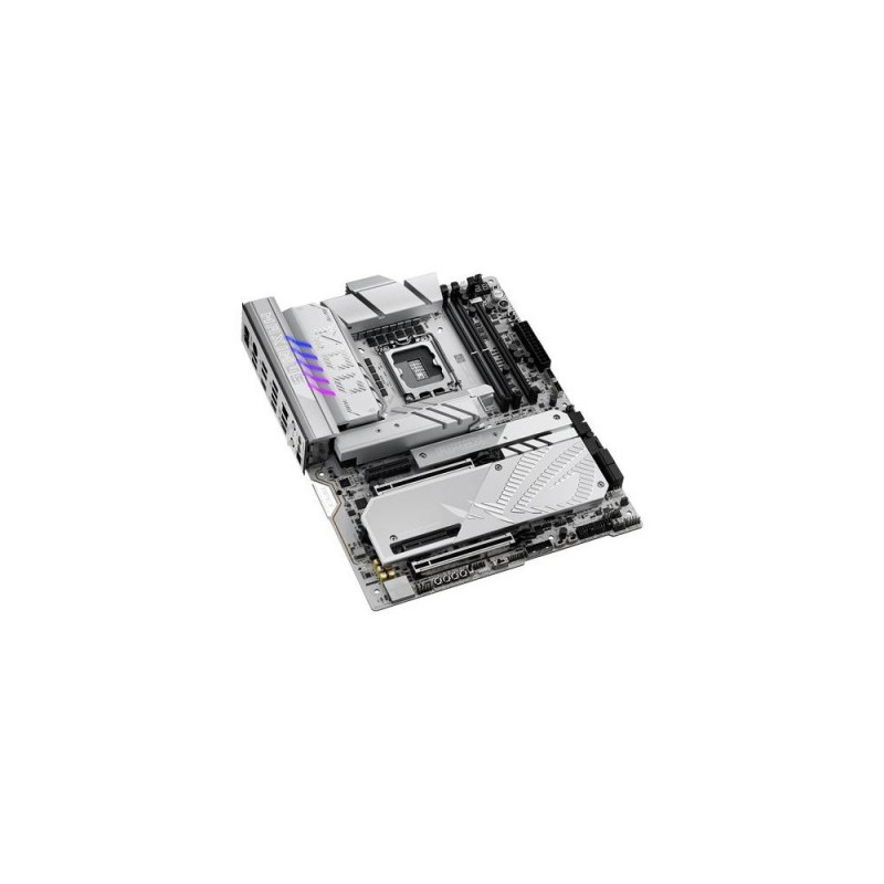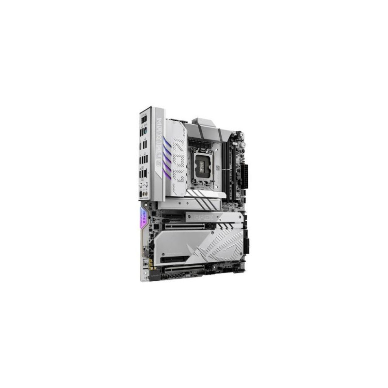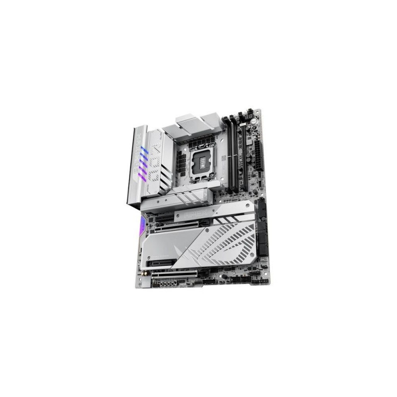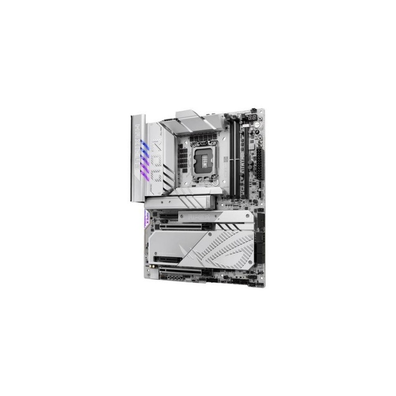<b>ROG Maximus Z890 APEX</b><br>The ROG Maximus Z890 Apex fully supports Intel® Core™ Ultra processors (Series 2). Precision-engineered for supreme overclocking, it carries the legacy of the series forward into a new generation. With exceptional power delivery and a two-slot DDR5 memory layout, overclockers can meet and exceed their ambitions for record-breaking CPU and memory performance. For those who favor lighter colors for the aesthetics of their build, the ROG Maximus Z890 Apex features a cobble-gray surface, polished metallic accents, sleek contours and a predominantly silver palette.ASUS ROG MAXIMUS Z890 APEX. Processor manufacturer: Intel, Processor socket: LGA 1851 (Socket V1), Compatible processor series: Intel Core Ultra (Series 2). Supported memory types: DDR5-SDRAM, Maximum internal memory: 96 GB, Memory slots type: DIMM. Supported storage drive interfaces: M.2, SATA III, Supported storage drive types: HDD & SSD, RAID levels: 0, 1, 5, 10. Ethernet interface type: 5 Gigabit Ethernet, Top Wi-Fi standard: Wi-Fi 7 (802.11be), Wi-Fi standards: Wi-Fi 7 (802.11be). Component for: PC, Motherboard form factor: ATX, Motherboard chipset family: Intel