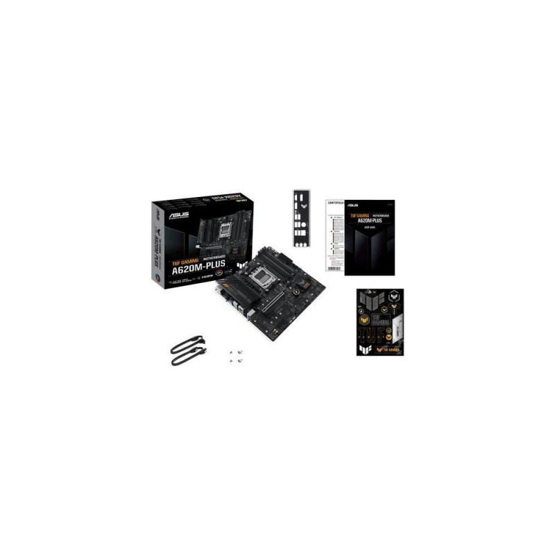 ASUS TUF GAMING A620M-PLUS takes all the essential elements of AMD Ryzen 7000-series processors and combines them with game-ready features and proven durability. Engineered with military-grade components, an upgraded power solution and a comprehensive cooling system, this motherboard goes beyond expectations with rock-solid and stable performance for marathon gaming. TUF GAMING motherboards also undergo rigorous endurance testing to ensure that they can handle conditions where others may fail. Aesthetically, this model incorporates rugged off-black and geometric design elements to reflect the dependability and stability that defines the TUF GAMING series.<br><br><b>INTELLIGENT CONTROL</b><br>Comprehensive controls form the foundation of the ASUS TUF GAMING series. The TUF GAMING A620 motherboard packs flexible tools to tune every aspect of your system, enabling performance tweaks to perfectly match the way you work to maximize productivity.<br><br><b>All-Around Energy Efficiency</b><br>The Power Saving function contains several settings can easily optimize power consumption and maximize energy savings. You can enable a CPU power limit, darken Aura lighting, and set the fan profile to a power saving mode. You can also toggle the Power Saver plan that is built into Microsoft Windows.<br><br><b>UEFI BIOS</b><br>The renowned ASUS UEFI BIOS provides everything you need to configure, tweak and tune your system. It offers intelligently simplified options for PC DIY beginners and comprehensive features for seasoned veterans.<br><br><b>Armoury Crate</b><br>The ASUS-exclusive Armoury Crate centralizes easy control of supported gaming products. A single intuitive interface lets you customize RGB lighting for all compatible devices and link them to Aura Sync for unified illumination. It also offers information and control for a select and growing hardware ecosystem, with input device settings, Fan Xpert 2+ and Two-Way AI Noise Cancelation. Armoury Crate even features product registration, and a news section to stay in touch with the gaming community.<br><br><b>ROCK-SOLID PERFORMANCE</b><br>With upgraded power delivery and comprehensive cooling options to fuel AMD's CPUs, plus support for faster memory and storage, TUF GAMING A620 motherboards are the perfect foundation for your next high-core-count AMD battle rig.<br><br><b>Six-Layer PCB Design</b><br>Multiple PCB layers optimize heat management for critical components to keep them at their optimal operating temperatures.<br><br><b>TUF Components</b><br>TUF Chokes<br>Certified military-grade TUF chokes deliver rock-solid power to the CPU, improving system stability.<br>TUF Capacitors<br>The TUF 5K black metallic capacitors provide 52% wider temperature tolerance and a 2.5X-longer lifespan than standard motherboard capacitors.<br><br><b>Digi+ VRM</b><br>The integrated Digi+ voltage-regulator module (VRM) is one of the finest in the industry, optimized for ultra-smooth and ultra-clean power delivery to the CPU at all times.<br><br><b>DRAM Overclocking Performance</b><br>Comprehensive memory tuning options are the cornerstone of TUF GAMING motherboards. With TUF GAMING A620 motherboards, you can extract all of the potential out of your DDR5 modules, whether they're from an extreme-speed kit or an entry-level set that would otherwise be locked.<br><br><b>PCIe 4.0 Support</b><br>Dual M.2 slots support up to PCIe 4.0 and also provide NVMe SSD RAID support for incredible performance potential. Create a RAID configuration with up to two PCIe 4.0 storage devices to enjoy the fast data transfer speeds.<br><br><b>Cooler By Design</b><br>Enlarged VRM Heatsink<br>The extensive surface area of this heatsink covers the VRMs and chokes to improve heat dissipation.<br><br><b>Comprehensive Fan Controls</b><br>TUF GAMING A620 motherboards feature comprehensive fan controls that can be configured via Fan Xpert 2+ utility in Armoury Crate or the award-winning ASUS UEFI BIOS.<br><br><b>Connectivity</b><br>TUF GAMING A620 motherboards reach new heights of performance potential with the PCI Express, dual DisplayPort, while an arsenal of USB ports, including USB Type-A connectors with fast USB 3.2 Gen 1 connectivity and one front USB 3.2 Gen 1 Type-C® connector for compatible cases.<br><br><b>EASY PC DIY</b><br>The TUF GAMING line offers easy setup for all builders. The TUF GAMING Alliance ecosystem grants compatibility, while Armoury Crate has Fan Xpert 2+, hardware info, Two-Way AI Noise Cancelation, RGB options and peripheral settings. This platform has intuitive tools to build and optimize dream rigs.<br><br><b>Build With Confidence</b><br>TUF GAMING Alliance is a collaboration between ASUS and trusted PC component brands to ensure compatibility across a wide range of parts, such as PC cases, power supplies, CPU coolers, memory kits and more. With new partnerships and components being added regularly, the TUF GAMING Alliance will continue to grow even stronger.<br><br><b>SafeSlot Core+</b><br>SafeSlot Core+ is the ASUS-exclusive PCIe slot fortified with a one-piece stainless-steel brace that shields the slot to protect it from damage. The metal cover is tightly secured to the slot with hooks, and the entire assembly is firmly anchored to the PCB with strengthened solder points to provide a secure foundation for heavyweight graphics cards.<br><br><b>ESD Guards</b><br>ESD Guards prolong the life of components while preventing damage from electrostatic discharge, providing protection for up to +/- 10 kV of air discharge and +/- 6 kV of contact discharge — greatly surpassing the respective industry standards of +/- 6 kV and +/- 4 kV. Surface-mounted TVS diodes in a dual in-line package help protect your PC from voltage spikes.<br><br><b>TUF LANGuard</b><br>TUF LANGuard is a military-grade innovation that integrates advanced signal-coupling technology and premium surface-mounted capacitors to improve throughput, protecting the motherboard from lightning strikes and static