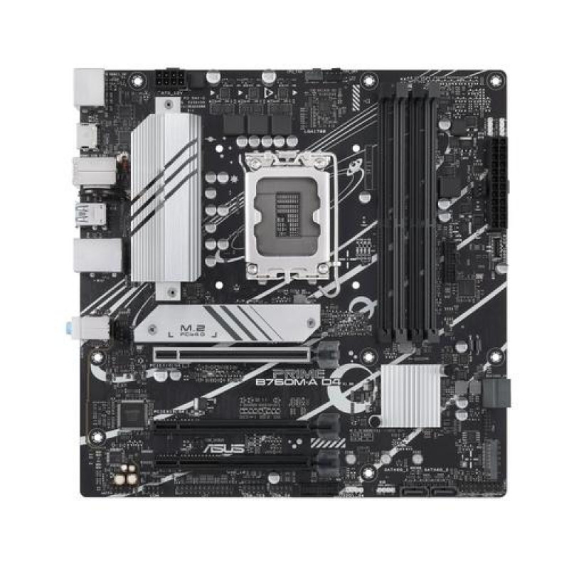 <b>B760M-A D4-CSM</b><br>ASUS Prime series motherboards are expertly engineered to unleash the full potential of 13th Gen Intel® Core™ Processors. Boasting a robust power design, comprehensive cooling solutions and intelligent tuning options, PRIME B760M-A D4-CSM provides users and PC DIY builders with a range of performance optimizations via intuitive software and firmware features.<br><br><b>FLEXIBILITY</b><br>Comprehensive controls form the foundation of the ASUS PRIME series. The PRIME B760 motherboard packs flexible tools to tune every aspect of your system, enabling performance tweaks to perfectly match the way you work to maximize productivity.<br><br><b>Intelligent Control</b><br>ASUS Intelligent Control makes your PC smart. Along with taking care of complex tuning and dynamically optimizing essential aspects of your system, it offers intelligently simplified options for newcomers to PC DIY, as well as more comprehensive features for seasoned veterans.<br><br><b>All-Around Energy Efficiency</b><br>The Power Saving function contains several settings can easily optimize power consumption and maximize energy savings. You can enable a CPU power limit, darken Aura lighting, and set the fan profile to a power saving mode. You can also toggle the Power Saver plan that is built into Microsoft Windows.<br><br><b>Flexible Air- and Liquid-Cooling Controls</b><br>ASUS Fan Xpert 2+ software provides comprehensive control over fans and all-in-one (AiO) coolers. Whether cooling with air or water, an Auto-Tuning mode intelligently configures all parameters with a single click. There’s also an Extreme Quiet mode that reduces chassis fan speeds to below the default minimum to keep your system whisper-quiet when performing light tasks. Fans, AiO coolers can also be controlled via the UEFI BIOS.<br><br><b>Precise Digital Power Control</b><br>The Digi+ voltage-regulator module (VRM) delivers real-time control over voltage droop, automatically switching frequency and power-efficiency settings. It also allows you to fine-tune your CPU for ultimate stability and performance.<br><br><b>UEFI BIOS</b><br>The renowned ASUS UEFI BIOS provides everything you need to configure, tweak and tune your system. It offers intelligently simplified options for PC DIY beginners, as well as comprehensive features for seasoned veterans.<br><br><b>Advanced Tuning for Serious Tweakers</b><br>An intuitive Advanced mode offered via the UEFI lets you take complete control. A built-in search feature makes it easy to find options, and various advanced functions let you intelligently make nuanced adjustments so you can dial in performance just the way you want.<br><br><b>Search Function</b><br>Quickly and easily find the option or setting you need.<br><br><b>ASUS User Profile</b><br>Port configuration settings between different BIOS versions or share them with friends.<br><br><b>Quick and Simple Setup</b><br>EZ mode displays vital settings and stats and also offers guided wizards, drag-and-drop functionality, and one-click application of important settings — all to help you get your rig up and running in no time.<br><br><b>Intuitive Graphical Fan Control</b><br>Fine-tune individual fan settings simply by dragging a curve with the mouse.<br><br><b>Aura On/Off Mode (Stealth)</b><br>Easily enable or disable Aura RGB lighting or every onboard LED, for a subdued aesthetic touch.<br><br><b>COOLING</b><br>PRIME B760 series are engineered with multiple onboard heatsinks and an array of hybrid fan headers to ensure your rig stays cool and stable under intense workloads.<br><br><b>M.2 Heatsink</b><br>M.2 heatsink wards off throttling that can occur with M.2 storage during sustained transfers. The heatsink is held in place by captive screws, and these removable captive screws help reduce risk of drops or loss during heatsink removal.<br><br><b>VRM Heatsink and Thermal Pad</b><br>VRM heatsink and thermal pad improve heat transfer from the MOSFETs and chocks for better cooling performance.<br><br><b>Cooler by Design</b><br>PRIME B760 series features comprehensive cooling controls that are configurable via Fan Xpert 2+ software or via the UEFI BIOS.<br><br><b>Multiple Temperature Sources</b><br>Each header can dynamically reference three thermal sensors. Fan Xpert 2+ allows you to map the temperature of supported ASUS graphics cards to optimize cooling for GPU- and CPU-intensive tasks.<br><br><b>Smart Protection</b><br>A dedicated integrated circuit protects each fan header from overheating and overcurrent.<br><br><b>4-Pin PWM/DC Fan</b><br>Each onboard header supports auto-detection of PWM or DC fans.<br><br><b>PERFORMANCE</b><br>The PRIME B760 series are built to handle the high core counts and bandwidth demands of 13th Gen Intel® Core™ Processors. ASUS B760 motherboard provides all the fundamentals to boost daily productivity, so your system will be ready for action with stable power, intuitive cooling and flexible data transfer options.<br><br><b>Robust Power Design</b><br>Stable power is essential to extract every last bit of performance out of Intel® processors. The PRIME B760M-A D4 is geared to cater to the demands of these high-core-count CPUs.<br><br><b>ProCool Connector</b><br>Proprietary connectors augment the motherboard's link to the PSU with 8 pin connectors that pass 12 volts of power directly to the processors. Each jack features solid pins that can handle more current than hollow-pin connectors.<br><br><b>Six-Layer PCB Design</b><br>Multiple PCB layers optimize heat management for critical components, providing more headroom to push CPUs beyond stock speeds.<br><br><b>Memory<br>DDR4 Support</b><br>Improvements to trace routing design provide the latest Intel® processors with enhanced access to memory bandwidth. ASUS OptiMem II technology carefully maps memory signal pathways across different PCB layers to reduce path distance, and it adds shielding zones that significantly reduce crosstalk.<br><br><b>ASUS OptiMem I