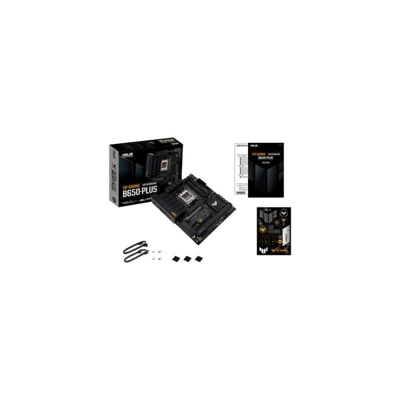 ASUS TUF GAMING B650-PLUS takes all the essential elements of the latest AMD Ryzen 7000-series processors and combines them with game-ready features and proven durability. Engineered with military-grade components, an upgraded power solution and a comprehensive cooling system, this motherboard goes beyond expectations with rock-solid and stable performance for marathon gaming. TUF GAMING motherboards also undergo rigorous endurance testing to ensure that they can handle conditions where others may fail. Aesthetically, this model incorporates rugged off-black and geometric design elements to reflect the dependability and stability that defines the TUF GAMING series.<br><br><b>INTELLIGENT CONTROL</b><br>Comprehensive controls form the foundation of the ASUS TUF GAMING series. The TUF GAMING B650 motherboard packs flexible tools to tune every aspect of your system, enabling performance tweaks to perfectly match the way you work to maximize productivity.<br><br><b>CPU Performance Boost</b><br>AMD Precision Boost Overdrive(PBO) pushes the CPU current and voltage budget to opportunistically increase performance. By aggressively tuning the PBO parameters, AMD‘s algorithm can leverage the motherboard’s robust power solution to ramp up performance even higher.<br><br><b>All-Around Energy Efficiency</b><br>The Power Saving function contains several settings can easily optimize power consumption and maximize energy savings. You can enable a CPU power limit, darken Aura lighting, and set the fan profile to a power saving mode. You can also toggle the Power Saver plan that is built into Microsoft Windows.<br><br><b>UEFI BIOS</b><br>The renowned ASUS UEFI BIOS provides everything you need to configure, tweak and tune your system. It offers intelligently simplified options for PC DIY beginners and comprehensive features for seasoned veterans.<br><br><b>Armoury Crate</b><br>The ASUS-exclusive Armoury Crate centralizes easy control of supported gaming products. A single intuitive interface lets you customize RGB lighting for all compatible devices and link them to Aura Sync for unified illumination. It also offers information and control for a select and growing hardware ecosystem, with input device settings, Fan Xpert 4 and Two-Way AI Noise Cancelation. Armoury Crate even features product registration, and a news section to stay in touch with the gaming community.<br><br><b>ROCK-SOLID PERFORMANCE</b><br>With upgraded power delivery and comprehensive cooling options to fuel AMD's latest CPUs, plus support for faster memory and storage, TUF GAMING B650 motherboards are the perfect foundation for your next high-core-count AMD battle rig.<br><br><b>Teamed Power Stages</b><br>12+2 power stages are each rated to handle 60 amperes, combining high-side and low-side MOSFETS and drivers into a single package to deliver power, efficiency and stable performance for all compatible AMD processors.<br><br><b>8+4 PIN ProCool Power Connectors</b><br>Compared to traditional power inputs, ASUS ProCool connectors are built to tight specifications to ensure full contact with PSU power cables. The resulting lower impedance helps prevent hotspots and connector failure.<br><br>TUF Components<br><br><b>TUF Chokes</b><br>Certified military-grade TUF chokes deliver rock-solid power to the CPU, improving system stability.<br><br><b>TUF Capacitors</b><br>The TUF 5K black metallic capacitors provide 52% wider temperature tolerance and a 2.5X-longer lifespan than standard motherboard capacitors.<br><br><b>Digi+ VRM</b><br>The integrated Digi+ voltage-regulator module (VRM) is one of the finest in the industry, optimized for ultra-smooth and ultra-clean power delivery to the CPU at all times.<br><br><b>DRAM Overclocking Performance</b><br>DDR5 OC 6400<br>Comprehensive memory tuning options are the cornerstone of TUF GAMING motherboards. With TUF GAMING B650 motherboards, you can extract all of the potential out of your DDR5 modules, whether they're from an extreme-speed kit or an entry-level set that would otherwise be locked.<br><br><b>PCIe 5.0 Support</b><br>TUF GAMING B650 motherboards also feature one PCIe 5.0 M.2 slot to enjoy the fastest data transfers of up to 128 Gbps*, and all M.2 slots support for NVMe RAID configurations to take advantage of the latest available speeds.<br><br>Cooler By Design<br><b>1. Enlarged VRM Heatsink</b><br>The extensive surface area of this heatsink covers the VRMs and chokes to improve heat dissipation.<br><br><b>2. Optimized M.2 Heatsink Design</b><br>All M.2 slots have dedicated heatsinks, keeping M.2 SSDs at optimal operating temperatures to ensure consistent performance and reliability.<br><br><b>Comprehensive Fan Controls</b><br>TUF GAMING B650 motherboards feature comprehensive fan controls that can be configured via Fan Xpert 4 utility in Armoury Crate or the award-winning ASUS UEFI BIOS.<br><br><b>Connectivity</b><br>TUF-GAMING B650 motherboards reach new heights of performance potential with the latest version of PCI Express, while an arsenal of USB ports includes three Type-C® connections, and Thunderbolt™ (USB4®) expands compatibility and bandwidth even further.<br><br><b>EASY PC DIY</b><br>The TUF GAMING line offers easy setup for all builders. The TUF GAMING Alliance ecosystem grants compatibility, while Armoury Crate has Fan Xpert 4, hardware info, Two-Way AI Noise Cancelation, RGB options and peripheral settings. This platform has intuitive tools to build and optimize dream rigs.<br><br><b>Build With Confidence</b><br>TUF GAMING Alliance is a collaboration between ASUS and trusted PC component brands to ensure compatibility across a wide range of parts, such as PC cases, power supplies, CPU coolers, memory kits and more. With new partnerships and components being added regularly, the TUF GAMING Alliance will continue to grow even stronger.<br><br><b>Safeslot Core+ & SafeDIMM</b><br>SafeSlot Core+ is a reinforced metal sheath added to a PCIe slot to keep a card firmly installe