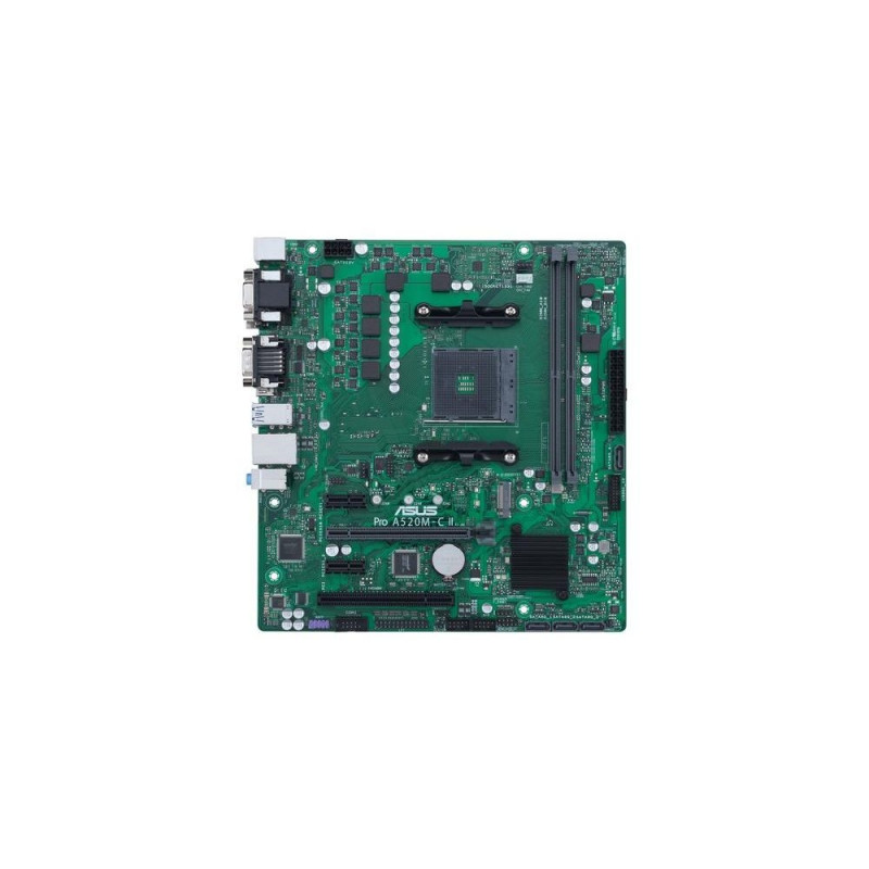 ASUS Pro business motherboards provide enhanced features to smooth your IT operations, including comprehensive system protection, 24/7 stability and reliability and an improved management suite for easier customization. Known as the world's biggest and best-known motherboard brand, ASUS provides world-class after-sales service and guaranteed long-term availability to maximize your investment over the product life cycle and offers a high-quality, TCO-optimized solution for your business computing-needs.<br><br><b>ASUS Corporate Stable Model</b><br>ASUS Corporate Stable Model (CSM) is a commercial program designed to provide stable and reliable motherboards. Offering up to 36-month product lifecycle support and 6-month end-of-life notice to allow sufficient lead times for your organization to get ready for product transitions. Each purchase of an ASUS CSM motherboard comes with ASUS Control Center Express - server-grade IT management software.<br><br><b>ASUS Control Center Express</b><br>ASUS Control Center Express is an integrated IT monitoring and management software designed to deploy faster, simplify IT operations and improve productivity with comprehensive control and user-friendly functions. ASUS Control Center Express is compatible with over 100 ASUS motherboards to provide a high-quality, TCO-optimized solution for your business needs.<br><br><b>Internationally Certified Business Motherboard</b><br>ASUS business motherboards are enterprise proven with leading quality that exceeds industry standards. Certified by multiple international safety and environmental organizations, ASUS business motherboards provide a safe, secure and sustainable solution, making them the ideal choice for your business.<br><br><b>ASUS Trouble Shooting Solution</b><br>ASUS Debug header is a 10-1 pin low pin count (LPC) header for connecting to debug cards for faster, more efficient motherboard troubleshooting. When connected to an ASUS Debug Card, administrators can view error and debugging codes on the integrated LCD display, and get better idea of initialization and recovery processes. ASUS business motherboards provide a complete troubleshooting solution, making mass production faster and more cost effective.<br><br><b>Remote IT Management</b><br>The onboard SMBUS header* connects to a DASH LAN card for remote IT management. DASH is a desktop and mobile architecture system hardware that allows the motherboard to be managed via the network.<br><br><b>ASUS Commercial BIOS Kit</b><br>ASUS understands how important a customized product impacts users' mind share, experience the brand new Commercial BIOS Kit for partial BIOS update solution!ASUS PRO A520M-C II/CSM. Processor manufacturer: AMD, Processor socket: Socket AM4, Compatible processor series: AMD Ryzen™ 3, AMD Ryzen™ 5, AMD Ryzen™ 7. Supported memory types: DDR4-SDRAM, Maximum internal memory: 64 GB, Memory slots type: DIMM. Supported storage drive interfaces: M.2, SATA III, Supported storage drive types: HDD & SSD, RAID levels: 0, 1, 10. USB connector type: USB Type-A. Ethernet interface type: Gigabit Ethernet