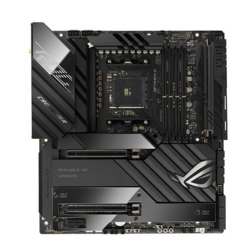 <b>ROG Crosshair VIII Extreme</b><br>The ROG Crosshair VIII Extreme combines the best elements of the renowned ROG X570 motherboard lineup into a single beastly package amped to elevate Ryzen-based builds beyond all boundaries.<br><br><b>PERFORMANCE</b><br>Advanced engineering and menacing power lay the foundation for the ROG Crosshair VIII Extreme to thrive where others choke.<br><br>Teamed Power Architecture<br>Modern CPU architectures up the ante for motherboard power design by transitioning from deep power saving modes to full load almost instantaneously. The latest ROG VRM architecture rises to the challenge by utilizing teamed power stages to rapidly swing current, while maintaining exemplary thermal performance.<br><br>ASUS became the first manufacturer to implement phase doublers in the A8N32-SLI Deluxe motherboard back in 2005. The board’s VRM was lauded for elegantly overcoming the power-handling capabilities of components that were available at the time while also reducing voltage ripple. Those benefits lead to phase doublers becoming universally accepted in the industry, and they are still used for similar purposes today.<br><br>Today’s CPUs pack more cores than their predecessors, and the latest instruction sets allow them to crunch computationally dense workloads at an incredible pace. As an added bonus, these processors also consume less power at idle and can transition between loads states much more quickly. These improvements necessitated a re-evaluation of power design priorities, because phase doublers add a propagation delay that hampers transient response.<br><br>The latest integrated power components can handle higher currents than the devices of yesteryear, making it possible to implement a simple circuit topology that isn’t hamstrung by the processing lag of phase doublers. That’s why the ROG Crosshair VIII Extreme utilizes teamed power stages to deliver higher burst-current per phase, while maintaining the thermal performance of phase-doubled designs.<br><br>Each VRM component serves a specific purpose. PWM controllers control the circuit, and the power stages do the heavy lifting from an electrical and thermal standpoint. That's why ROG Crosshair VIII Extreme utilizes 20 power stages. The high-end power stages feature a low RDSON to reduce switching and conduction losses, helping to improve overall thermal headroom.<br><br>ASUS OptiMem III<br>With proprietary memory trace layout tweaks that improve signal integrity and mitigate noise, OptiMem III allows memory kits to run at lower latencies and reduced voltages while operating at higher frequencies. Stack the ROG Crosshair VIII Extreme with your favorite modules and maximize AMD Zen 3 processor throughput for applications that demand massive bandwidth, or balance infinity fabric and memory performance for a diverse range of workloads.<br><br>DYNAMIC OC SWITCHER<br>Dynamic OC Switcher gives Ryzen processors newfound agility to crush multi-threaded workloads and slice through single-threaded apps. Simply configure a manual overclock for heavy tasks and then select a current threshold for Dynamic OC Switcher to automatically flip between your profile and AMD Precision Boost Overdrive (PBO).<br><br>COOLING<br>Heavyweight cooling keeps onboard components and high-performance M.2 drives chilled without requiring direct airflow to deal with the thermal onslaught.<br><br>Cooler by Design<br>The ROG Crosshair VIII Extreme features comprehensive cooling options that are configurable via Fan Xpert 4 or the UEFI BIOS.<br><br>ROG Water-Cooling Zone<br>Dual water-temperature headers and a flow-rate header feed information straight into the AI Suite utility, allowing you to track coolant temperatures and the flow rate of the entire loop.<br><br>ROG Fan Controller<br>The ROG Fan Controller offers six additional headers that can be controlled via FanXpert 4. The card features two temperature-sensor headers, along with two thermistors that can be attached to various components. There are also six ARGB headers to illuminate compatible fans and addressable strips.<br><br>CONNECTIVITY<br>Advanced connectivity features including WiFi 6E and two Ethernet ports provide all the bandwidth needed for smooth online and LAN gameplay. File transfers and load times get a boost as well, thanks to a front-panel USB 3.2 2x2 header. The header also supports PD 3.0 60-watt power deliver for charging devices. Additionally, there’s onboard SupremeFX audio for rich, premium sound.<br><br>WiFi 6E<br>Onboard WiFi 6E technology takes advantage of the newly available radio spectrum in the 6 GHz band, providing up to three times the bandwidth of the 5 GHz band and up to seven 160 MHz bands to deliver ultrafast wireless networking speeds along with improved capacity and better performance in dense wireless environments.<br><br>Marvell AQtion 10 Gbps Ethernet<br>Designed to meet the demanding requirements of power users and content creators, 10 Gbps onboard Ethernet provides a new level of home networking. With up to 10 times the bandwidth of standard gigabit Ethernet, uncompressed 4K UHD video streaming is perfectly smooth and system backups and file transfers are faster than ever before.<br><br>Intel 2.5 Gb Ethernet<br>Onboard 2.5 Gb Ethernet gives wired connections a boost, providing up to a 250% improvement over standard Ethernet connections for faster file transfers, smoother lag-free gaming and high-res video streaming.<br><br>USB 3.2 Gen 2 Front-Panel Connectors<br>The front-panel USB 3.2 connectors are ready to accommodate a wide variety of devices.<br><br>USB 3.2 Gen 2x2 Front-Panel Connector<br>The latest USB standard opens another USB 3.2 Gen 2 lane for a maximum data transfer throughput of up to 20 Gbps. There’s also PD 3.0 60 W to quick-charge devices, delivering up to 3-times faster charging speeds compared to 5-watt / 5-volt 1 A charging.<br><br>Two Onboard Thunderbolt 4 USB-C Ports<br>Each port delivers up to 40 Gbps of bidirecti