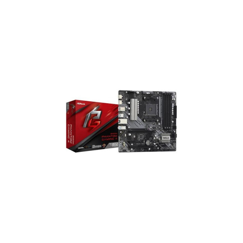 Phantom Gaming is designed by gamers and for gamers! Underneath its relentless appearance lie plentiful gaming oriented features and excellent gaming capabilities. It’s all about bringing a new gaming experience to gamers!<br><br><b>8 Power Phase Design</b><br>Featuring sturdy components and completely smooth power delivery to the CPU. Plus, it enhanced performance with the lowest temperature for advanced gamers.<br><br><b>Premium 50A Power Choke</b><br>Compared to traditional chokes, ASRock’s premium 50A power chokes effectively make the saturation current up to three times better, thus providing enhanced and improved Vcore voltage to the motherboard.<br><br><b>A SOLID M.2-SOLUTION PERFORMER</b><br>Dual M.2 For SSD, Supports Type 2280 M.2<br>Ready for higher capacity and even faster Type 2280 M.2 NVMe SSD to fulfill the need of performance. Hyper M.2 socket that supports PCIe Gen4 x4 while M.2 socket is capable of running PCIe Gen3 x2 and SATA3 mode.<br><br><b>2oz Copper PCB</b><br>2 ounce copper inner layers that provide stable signal traces and power shapes! Delivering lower temperature and higher energy efficiency for overclocking, it's able to support the latest DDR4 memory modules with most extreme memory performance!<br><br><b>RULE YOUR OWN LIGHTING WAY - POLYCHROME RGB</b><br>This motherboard features onboard RGB headers and an addressable RGB header that allow motherboard to be connected to compatible LED devices such as strip, CPU fans, coolers, chassis and so on. Users may also synchronize RGB LED devices across the Polychrome RGB Sync-certified accessories to create their own unique lighting effects.<br><br>*The addressable RGB LED header supports WS2812B addressable RGB LED strip (5V/Data/GND), with a maximum power rating of 3A (5V), a max of 80 LEDs and length within 2 meters.<br>*The RGB LED header supports standard 5050 RGB LED strip (12V/G/R/B), with a maximum power rating of 3A (12V) and length within 2 meters.<br><br><b>Dual Graphics Outputs</b><br>Complete with two types of most used connectors! Packed with a HDMI + DisplayPort combo, you have more graphics output options now.<br><br><b>HDMI 4k @60Hz</b><br>Supports the most recent HDMI 4K 60Hz graphics output specification. With the larger bandwidth and increased frame rate, the motion on your screen becomes more fluid and less blurry.<br><br><b>AMD StoreMI Technology</b><br>A powerful tool that combines the speed of your SSD with the capacity of your hard disk into a single, fast, easy-to-manage drive, AMD StoreMI technology “combines” these two types of storage into a single drive and automatically moves the data you access the most to the SSD, so you get the best of both worlds.<br><br><b>Sapphire Black PCB</b><br>Pure black PCB appearance. The new Sapphire Black PCB represents rock-solid quality and gives the motherboard a more mysterious touch.<br><br><b>High Density Glass Fabric PCB</b><br>High Density Glass Fabric PCB design that reduces the gaps between the PCB layers to protect the motherboard against electrical shorts caused by humidity.<br><br><b>2oz Copper PCB</b><br>Using only carefully selected copper materials for PCB layers, 2oz Copper PCB delivers lower temperature and higher energy efficiency for overclocking.<br><br><b>Full Spike Protection</b><br>Some sensitive digital components on the motherboard are vulnerable to power surges, the excessive current may cause your system to malfunction immediately. ASRock Full Spike Protection includes various technologies to prevent your motherboard’s components from being damaged by these unexpected voltage spikes.<br><br><b>Live Update & APP Shop</b><br>ASRock Live Update & APP Shop is designed for your convenience. We provide various apps and support software for users to download. You can also easily optimize your system and keep your motherboard up to date with ASRock Live Update & APP Shop.Asrock B550M Phantom Gaming 4. Processor manufacturer: AMD, Processor socket: Socket AM4, Compatible processor series: AMD Ryzen 3000 Series. Supported memory types: DDR4-SDRAM, Maximum internal memory: 128 GB, Memory slots type: DIMM. Supported storage drive interfaces: SATA III, Supported storage drive types: HDD & SSD. Maximum resolution: 5120 x 2880 pixels. Ethernet interface type: Gigabit Ethernet, LAN controller: Realtek RTL8111H