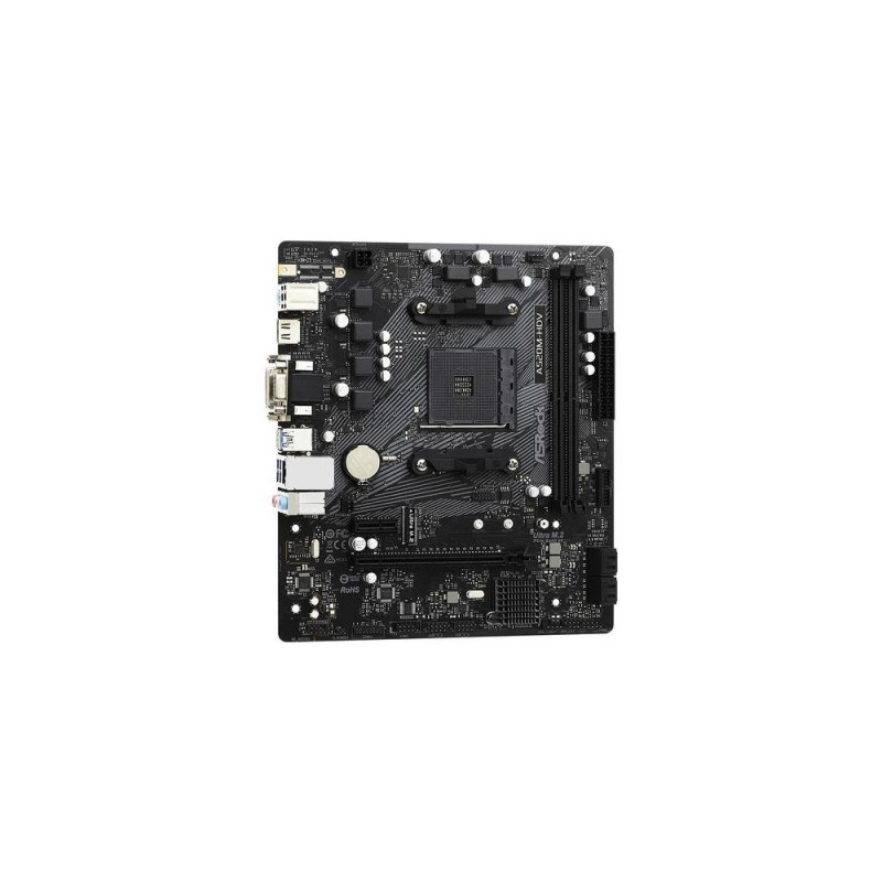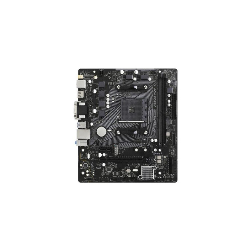 <b>A520 MOTHERBOARD FOR EVERYONE</b><br>All Essentials You Need For Computing<br><br><b>Ultra M.2 32Gb/s (PCIe Gen3 x4 & SATA3)</b><br>The PCIe Gen3 x4 Ultra M.2 interface pushes data transfer speeds up to 32Gb/s. In addition, it also supports SATA3 6Gb/s M.2 modules.<br><br><b>HDMI 4k @60Hz</b><br>Supports the most recent HDMI 4K 60Hz graphics output specification. With the larger bandwidth and increased frame rate, the motion on your screen becomes more fluid and less blurry.<br><br><b>3 Graphics Outputs</b><br>Complete with all three types of most used connectors! Packed with a D-Sub + DVI-D + HDMI combo. Plus the HDMI port supports 4K resolution.<br>*Supported only with processors with integrated graphics. Please check CPU support list from each motherboard webpage.<br><br><b>Premium 50A Power Choke</b><br>Compared to traditional chokes, ASRock’s premium 50A power chokes effectively make the saturation current up to three times better, thus providing enhanced and improved Vcore voltage to the motherboard.<br><br><b>High Density Glass Fabric PCB</b><br>High Density Glass Fabric PCB design that reduces the gaps between the PCB layers to protect the motherboard against electrical shorts caused by humidity.<br><br><b>Sapphire Black PCB</b><br>Pure black PCB appearance. The new Sapphire Black PCB represents rock-solid quality and gives the motherboard a more mysterious touch.<br><br><b>Full Spike Protection</b><br>Some sensitive digital components on the motherboard are vulnerable to power surges, the excessive current may cause your system to malfunction immediately. ASRock Full Spike Protection includes various technologies to prevent your motherboard’s components from being damaged by these unexpected voltage spikes.<br><br><b>Live Update & APP Shop</b><br>ASRock Live Update & APP Shop is designed for your convenience. We provide various apps and support software for users to download. You can also easily optimize your system and keep your motherboard up to date with ASRock Live Update & APP Shop.Asrock A520M-HDV. Processor manufacturer: AMD, Processor socket: Socket AM4, Compatible processor series: AMD Ryzen 3000 Series. Supported memory types: DDR4-SDRAM, Maximum internal memory: 64 GB, Memory slots type: DIMM. Supported storage drive interfaces: M.2, SATA III. Graphics card family: AMD, Graphics card: Radeon Vega. Ethernet interface type: Gigabit Ethernet, LAN controller: Realtek RTL8111H