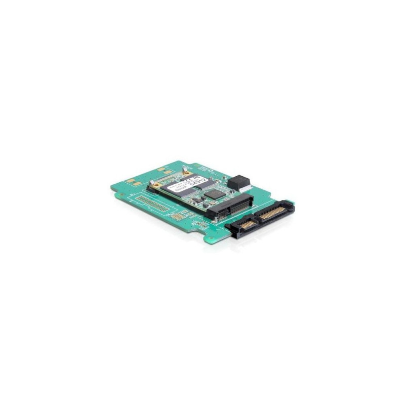<b>Description</b><br>This Delock converter, with size of a 2.5 HDD, enables the connection of a mSATA module in full size format. It can be integrated to your system through an internal SATA 22 pin port. Furthermore you can install a half size mSATA module, by using the optional Delock adapter 65228.DeLOCK 61881. Host interface: SATA, Output interface: mSATA. Product colour: Green. Width: 65 mm, Depth: 100 mm. Minimum system requirements: 22-pin SATA port