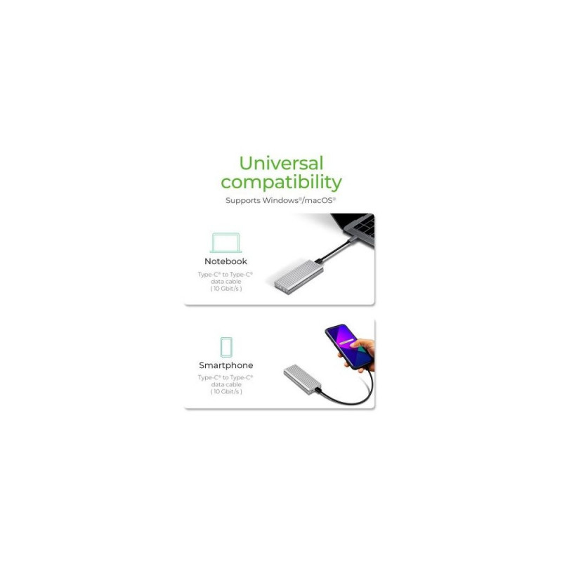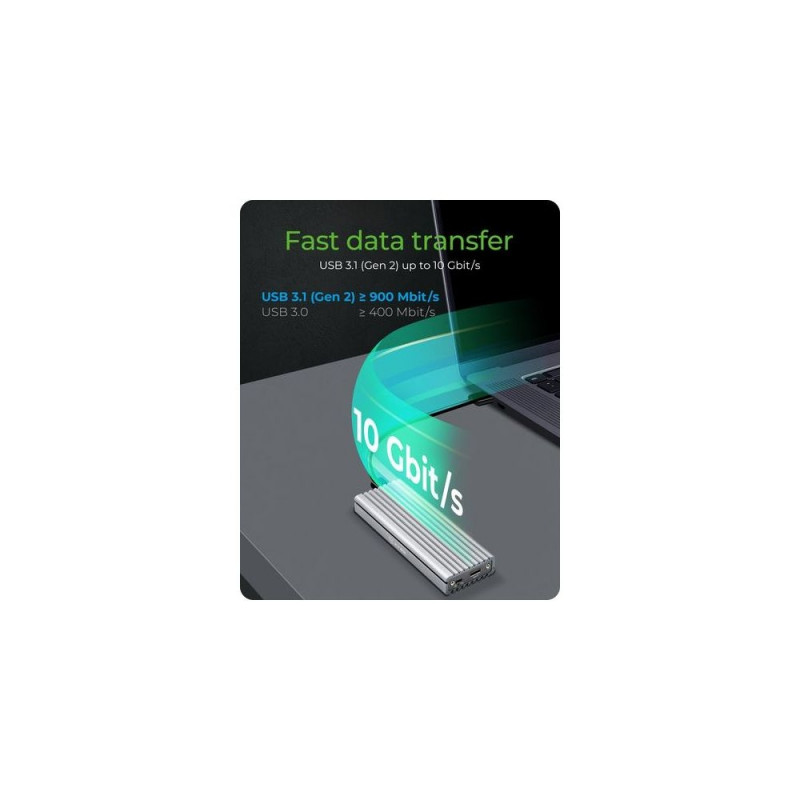 <b>Perfect cooling</b><br>The patented cooling plate transfers the resulting waste heat from the SSD to the housing and cools the SSD down optimally. This prevents the otherwise usual early reduction of the transfer rate to protect from<br><br>Your time is valuable. overheating. With the IB-1817Ma-C31, data can be sent permanently from A to B at maximum transfer rate of up to 10 Gbit/s.<br><br><b>Your time is valuable.</b><br>The IB-1817Ma-C31 is compatible with M.2 cards of 30, 42, 60, and 80 mm length, operating system-independent, and suitable for a variety of applications such as high-speed storage, cloning a drive, or running a mobile operating system. All this happens with a data transfer rate of up to 1000 MB per second. Compared to data transfer with a SATA drive, a data volume of 50 gigabytes is now transferred in 50 seconds instead of 1:36 minutes.<br><br><b>Click - Safe</b><br>With the IB-1817Ma-C31, sensitive data on the installed M.2 SSD can be protected from changes by a switch and released again. The write protection switch can be moved to the desired position using the supplied mini tool and a small hand movement. Click - safe.ICY BOX IB-1817Ma-C31. Product type: SSD enclosure. Number of storage drives supported: 1, Storage drive size: M.2, Supported storage drive interfaces: PCI Express 3.0, Maximum storage capacity: 2 TB. Data transfer rate: 10 Gbit/s. Product colour: Silver. USB connector type: USB Type-C