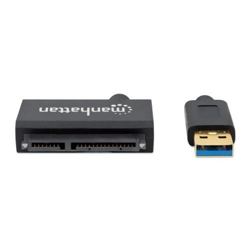 Connect a SATA 2.5" drive to a SuperSpeed USB 3.0 port for quick and easy data transfer, backup and storage.<br><br>Quickly Share, Store and Archive Important Data<br>The Manhattan SuperSpeed USB to SATA Adapter connects SATA and SATA-enhanced hard disks to desktop and notebook computers using a USB 3.0 port. Transferring and sharing files between desktop and notebook computers, backing up files or storing large file archives on external drives is faster and easier to accomplish. Compatibility with all types of 2.5" hard drives making this a versatile tool for professional and home users.<br><br>Suitable for Professional and Home Use<br>With the need for data security and data recovery growing, the SuperSpeed USB to SATA Adapter helps copy or transfer large amounts of data from drive to PC and vice versa. Easy to install and use, its plug-and-play and hot-swap capabilities help provide a convenient method to transfer, store data and test hard drives.Manhattan USB-A to SATA 2.5" Adapter Cable, 42cm, Male to Male, 5 Gbps (USB 3.2 Gen1 aka USB 3.0), Supports 48-bit LBA, SuperSpeed USB, Three Year Warranty. Host interface: USB Type-A, Output interface: SATA. Product colour: Black. Width: 28 mm, Depth: 73 mm, Height: 11 mm. Quantity per pack: 1 pc(s), Cables included: USB, Package type: Blister. Data transfer rate: 5 Gbit/s, Cable length: 0.42 m, Compatible operating systems: Windows XP/Vista/7/8 Mac 9.x/10.x Linux
