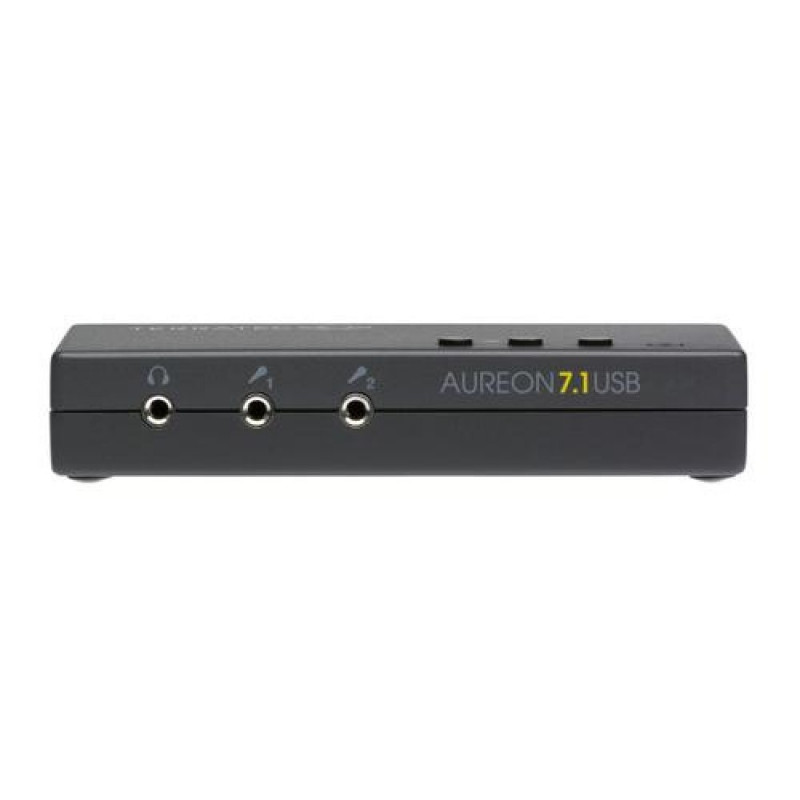 <b>Movies, music and games in excellent sound quality</b><br><br>- 7.1 Surround-Sound<br>- Connections for 2,4,6 or 8 speakers<br>- Up to 48 KHz recording and playback<br>- 2 microphone inputs (3.5 mm mini jack)<br>- 1 Line-In (3.5mm stereo-jack)<br>- Digital In and Outputs (TOS-Link)<br><br>The Aureon 7.1 USB is an inexpensive, but powerful USB sound card perfect for all multimedia content, which need a surround sound for full enjoyment. The successor of top selling Aureon 5.1 USB provides AC3/DTS through digital optical output, two microphone line inputs and a mute-button.<br><br>Enjoying a DVD movie, listening to an audio CD or gaming on your computer, a surround sound is always a must. The Aureon 7.1 USB makes it possible. It offers the best surround sound quality for your computer. The Aureon 7.1 USB is also improved concerning design. The matt varnish black housing is barely 12 x 6 cm. So it looks good on every desk.<br><br>The sound card offers connections for three speakers, subwoofer and center speaker. Furthermore the sound specialist TERRATEC equipped the Aureon 7.1 USB sound card with a digital input and output (I/O) for AC3 and DTS multichannel formats. Two line inputs for microphone and one line input connector rounds up the product.<br><br>The USB interface enables the communication with the computer quickly and the volume controller and mute button on the device itself enables a comfortable handling of the Aureon 7.1 USB.<br><br>Conclusion: For all multimedia Fans this sound card offers TERRATECs typical high quality for little money.Terratec Aureon 7.1 USB. Audio output channels: 7.1 channels, Audio quality: 16 bit. Host interface: USB. Minimum RAM: 512 MB, Minimum processor: 1 GHz Intel/AMD. Weight: 100 g, Width: 120 mm, Depth: 22 mm. Minimum storage drive space: 100 MB