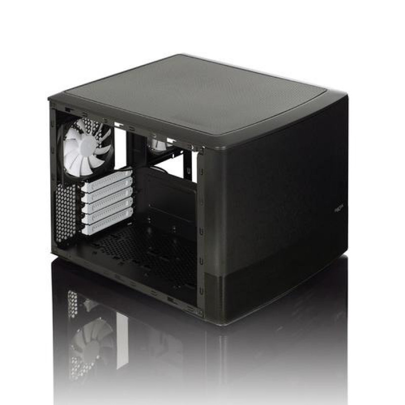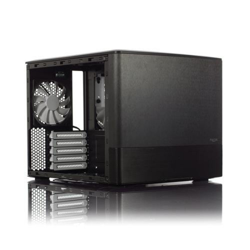 The Node 804 is a micro ATX chassis which focuses on cooling performance and maximum configurability, all packed in an interesting new form factor with Scandinavian elegant design.<br><br>The dual chamber layout separates hot running components from the cooler ones and allows for unrestricted airflow over the motherboard, processor and graphics card.<br><br>The case comes with three excellent 120mm fans but can be upgraded with several additional fans if needed.<br>Featuring plenty of options for placing water cooling components, tall heat sinks and hard drives.<br>The flexibility of this case really gives the users the possibility to create their optimal system build.Fractal Design Node 804. Form factor: Cube, Type: PC, Product colour: Black. Power supply location: Bottom. Front fans installed: 1x 120 mm, Front fans diameters supported: 120 mm, Rear fans installed: 2x 120 mm. Supported HDD sizes: 2.5,3.5". Width: 344 mm, Depth: 389 mm, Height: 307 mm