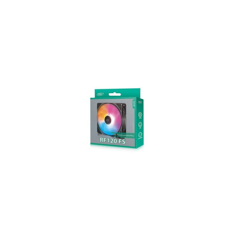 <b>Convenient Lighting</b><br>6 built-in high brightness LEDs. With the all-new purple/blue/orange lighting combination, you won’t need complicated control settings. Simply plug in the power on and enjoy the mesmerizing visual experience.<br><br><b>PWM ControlPWM</b><br> smart adjustment allows precise speed control. Equipped with shock pads, the fan undergoes optimal operation, effectively reducing noise generation.<br><br><b>Powerful Performance</b><br>Optimized 9 fan blades design, balancing air flow and wind pressure, providing strong cooling performance.<br><br><b>Long-lasting</b><br>BearingAdopts hydraulic self-oiling bearing, long lasting and low-noise.<br><br><b>Convenient</b><br>InstallationStandard screw sizes, fuss-free convenient installation.DeepCool RF120 FS. Type: Fan, Fan diameter: 12 cm, Rotational speed (min): 500 RPM, Rotational speed (max): 1500 RPM, Maximum air pressure: 1.66 mmH2O, Bearing type: Hydraulic. Voltage: 12 V. Width: 120 mm, Depth: 25 mm, Height: 120 mm. Product colour: Black