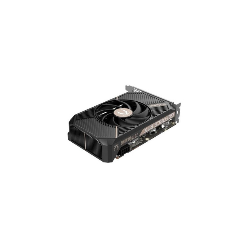 The ZOTAC GAMING GeForce RTX 5060 SOLO is a super-compact graphics card powered by NVIDIA‘s cutting edge Blackwell Architecture, DLSS4 and 8GB of GDDR7 memory. With a single-fan, dual-dual slot footprint, the SOLO is ready to deliver big performance in a minuscule footprint.Zotac GAMING GeForce RTX 5060 SOLO. Graphics processor family: NVIDIA, Graphics processor: GeForce RTX 5060. Discrete graphics card memory: 8 GB, Graphics card memory type: GDDR7, Memory bus: 128 bit. Maximum resolution: 7680 x 4320 pixels. DirectX version: 12 Ultimate, OpenGL version: 4.6. Interface type: PCI Express x8 5.0. Cooling type: Active, Number of fans: 1 fan(s)