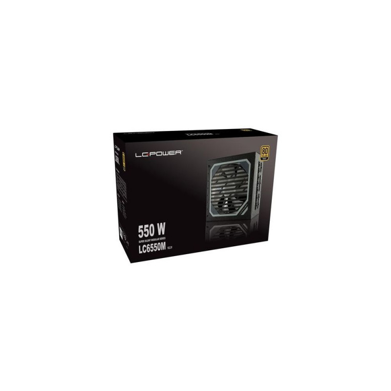 <br />LC-Power LC6550M V2.31. Total power: 550 W, AC input voltage: 110 - 240 V, AC input frequency: 47 - 60 Hz. Motherboard power connector: 24-pin ATX, Motherboard power cable length: 65 cm, SATA power cable length: 950 mm. Purpose: PC/Server, Power supply unit (PSU) form factor: ATX, 80 PLUS certification: 80 PLUS Gold. Product colour: Black, Cooling type: Active, Fan diameter: 12 cm. Cables included: SATA