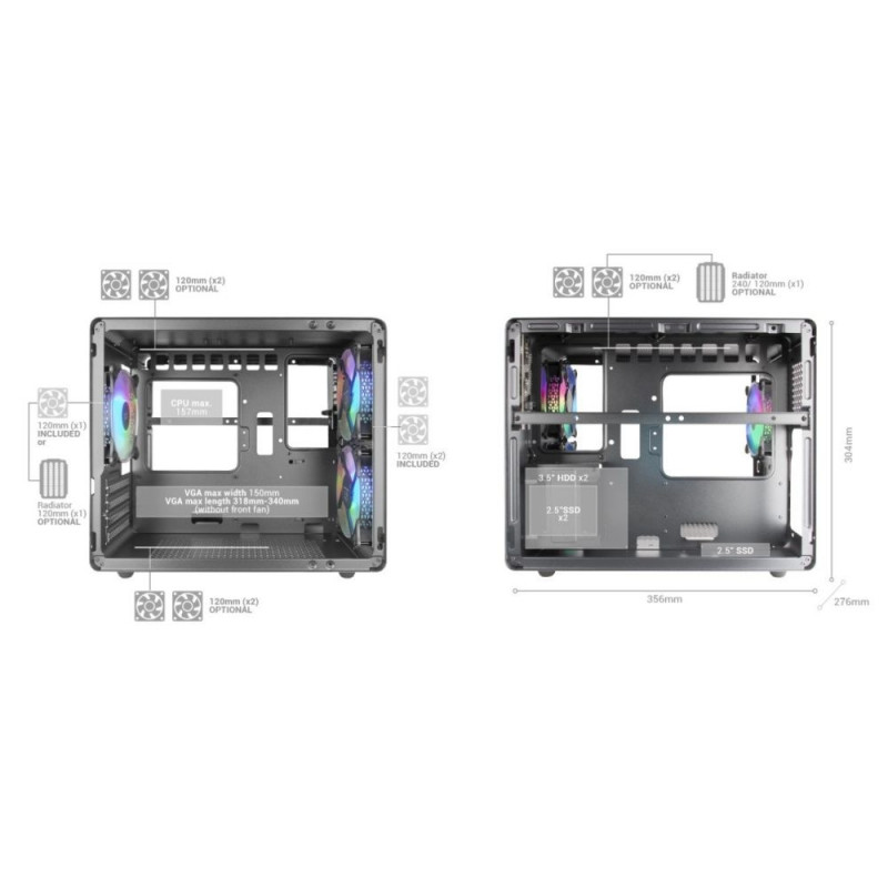 Fans capacity: Up to 9x 120mm
