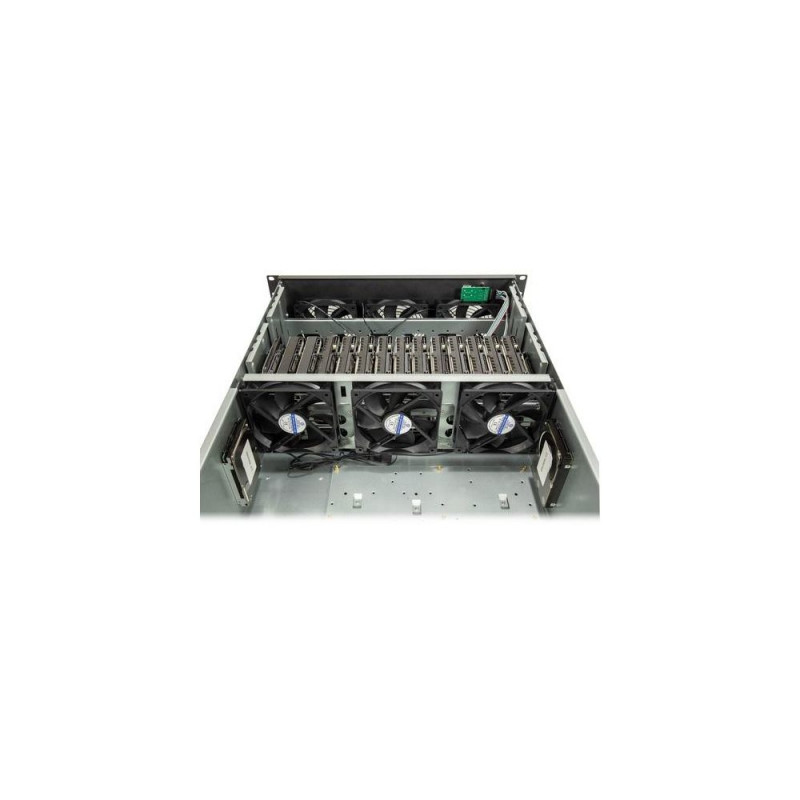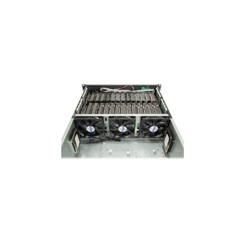 <b>The 4F28 Mining is a 19" rack case with 4U and an installation depth of 650mm.</b><br><br>In addition to accommodating a motherboard with a maximum of 12" x 13", it offers space for up to 28x 3.5" HDD and up to 4x 2.5" or 6x¹ 2.5" SSD. Thanks to its robust construction, the case offers the necessary support for your sensitive hardware. Six powerful 120mm case fans are preinstalled for optimal cooling of the hardware, three of them in the front and three more in the middle bar. Two USB 2.0 front connections complete the offer.Inter-Tech 4F28. Form factor: Rack, Product colour: Black, Silver, Supported motherboard form factors: ATX, EATX, micro ATX, Mini-ITX. Supported power supply form factors: ATX. Front fans installed: 3x 120 mm, Rear fans installed: 2x 80 mm. Supported HDD sizes: 3.5", SSD form factor: 2.5". Width: 482 mm, Depth: 688 mm, Height: 178 mm