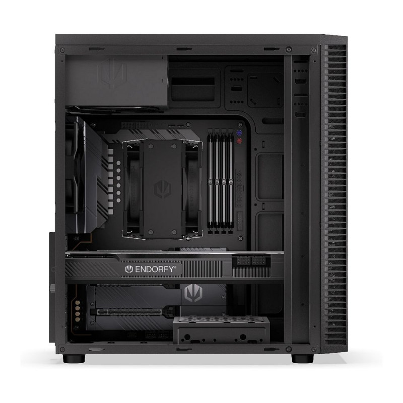 ENDORFY Armis 100 Solid. Vormifaktor: Tower, Tüüp: PC, Toote värvus: Must. Ees toetatud ventilaatorite läbimõõt: 120, 140 mm, Tagaküljel paigaldatud ventilaatorid: 1x 120 mm, Tagaküljel toetatud ventilaatorite läbimõõt: 120 mm. Toetatud kõvaketta suurused: 2.5, 3.5, 5.25", Ühilduvad mälukaardid: MicroSD (TransFlash), SD. Laius: 423 mm, Sügavus: 200 mm, Kõrgus: 388 mm