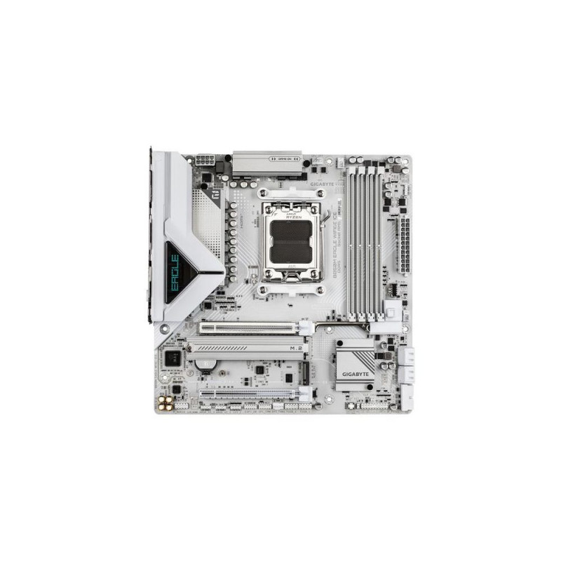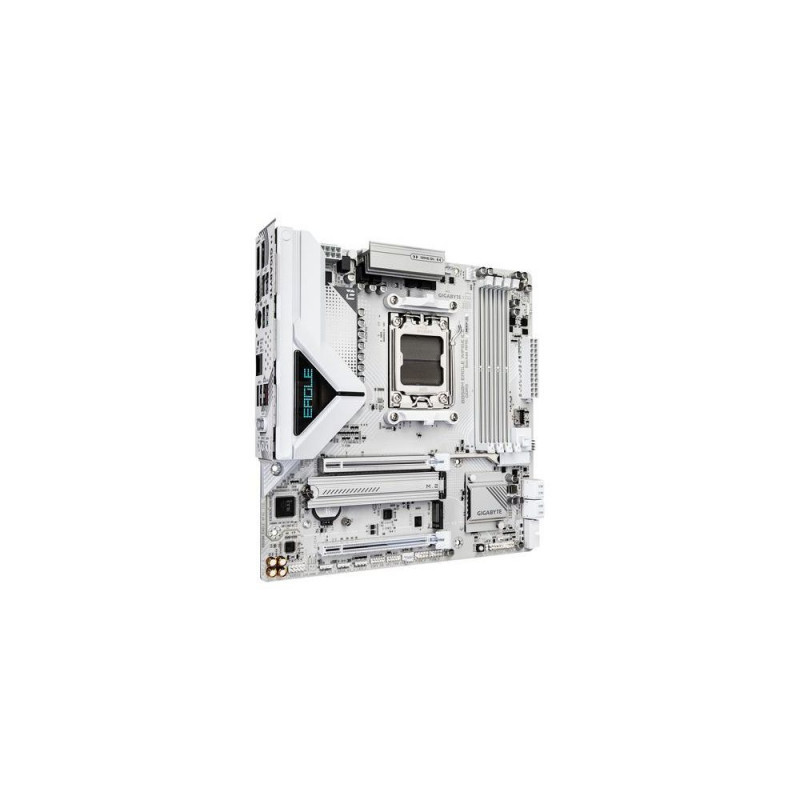 Elevate your computing experience with GIGABYTE's renowned motherboard series: AORUS, AERO, and GIGABYTE. Featuring innovative designs and advanced features, these boards offer exceptional performance and reliability. Whether you're a gamer, content creator, or professional, our series cater to your needs, ensuring uncompromising quality and cutting-edge technology.GIGABYTE B850M EAGLE WIFI6E ICE Motherboard - AMD Ryzen 9000 Series CPUs, 8+2+2 Phases Digital VRM, up to 8200MHz DDR5 (OC), 1xPCIe 5.0 + 1xPCIe 4.0 M.2, Wi-Fi 6E, 2.5 GbE LAN, USB 3.2 Gen 2. Processor manufacturer: AMD, Processor socket: Socket AM5, Compatible processor series: AMD Ryzen 7000 Series, AMD Ryzen 8000 Series, AMD Ryzen 9000 Series. Supported memory types: DDR5-SDRAM, Maximum internal memory: 256 GB, Memory slots type: DIMM. Supported storage drive interfaces: M.2, PCI Express 4.0, PCI Express 5.0, SATA III, Supported storage drive types: HDD & SSD, RAID levels: 0, 1, 5, 10. Maximum resolution: 4096 x 2160 pixels. Ethernet interface type: 2.5 Gigabit Ethernet, Top Wi-Fi standard: Wi-Fi 6E (802.11ax), Wi-Fi standards: 802.11a, 802.11b, 802.11g, Wi-Fi 4 (802.11n), Wi-Fi 5 (802.11ac), Wi-Fi 6 (802.11ax), Wi-Fi 6E...