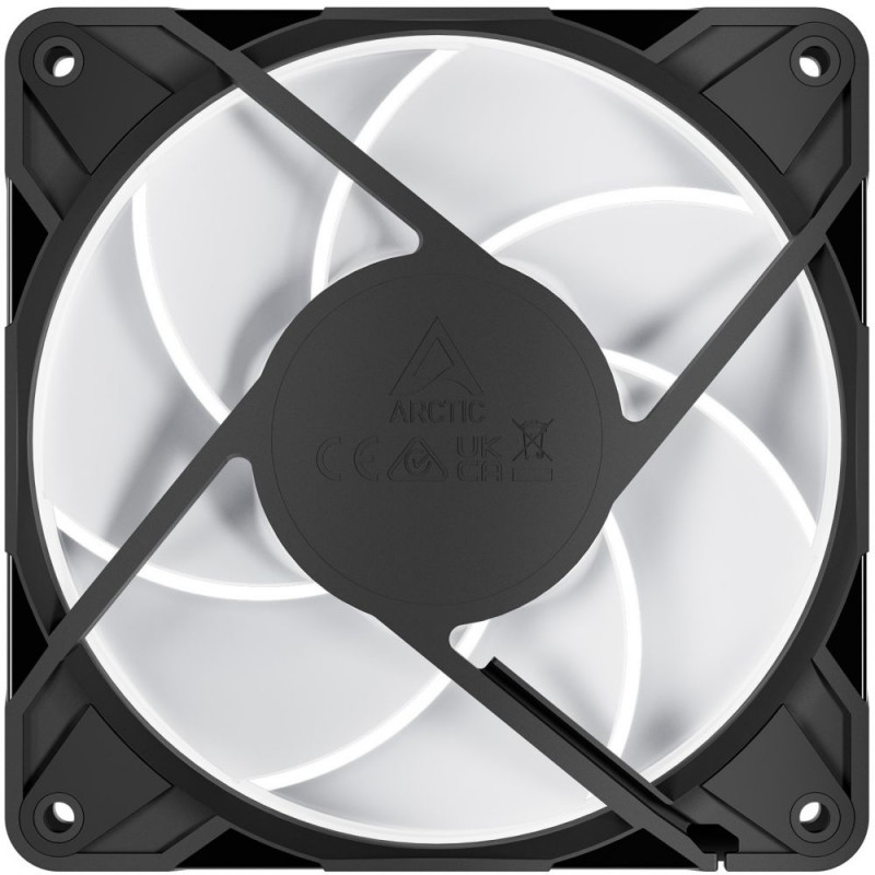 ARCTIC Freezer P12 Pro A-RGB – 120 mm A-RGB PWM-ventilaator kaablijaoturiga Tüüp: Ventilaator Ventilaatori läbimõõt: 12 cm Õhuvool: 131 m³/h Laagritüüp: Vedelikdünaamiline laager (FDB) Toote värv: Must, valge
