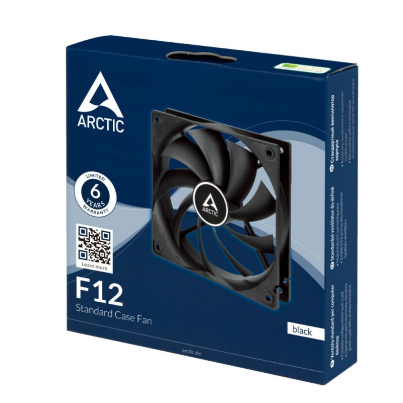 The ARCTIC F12 fan (model ACFAN00201A) is designed for effective cooling of computer components such as cases and radiators.