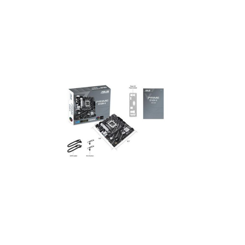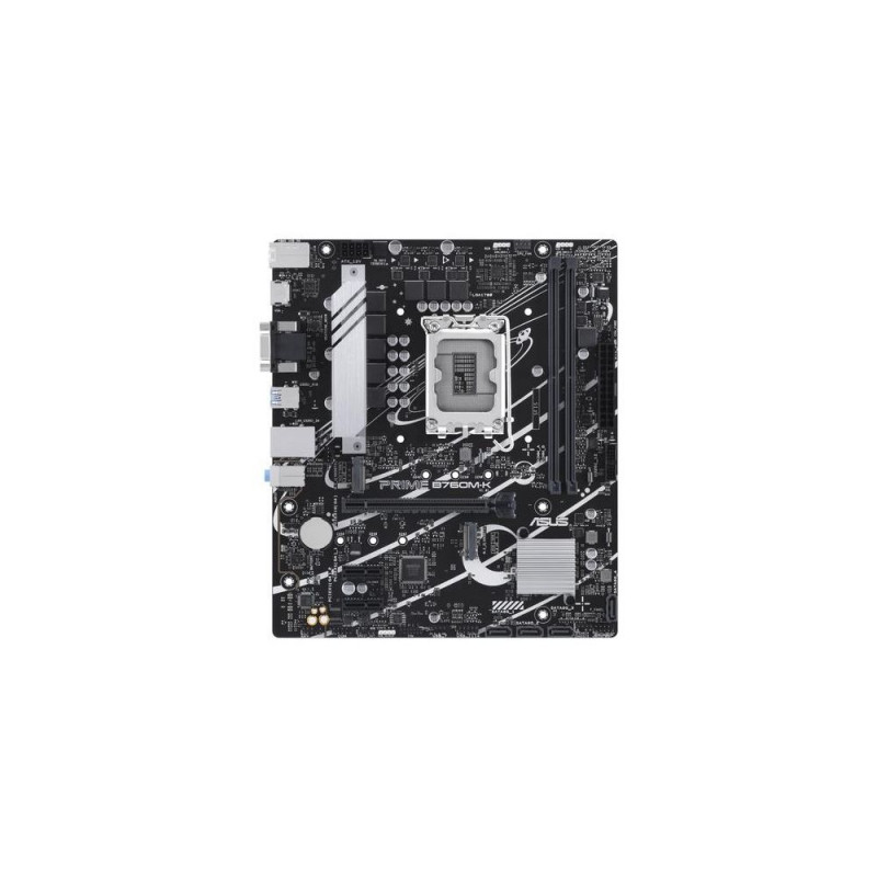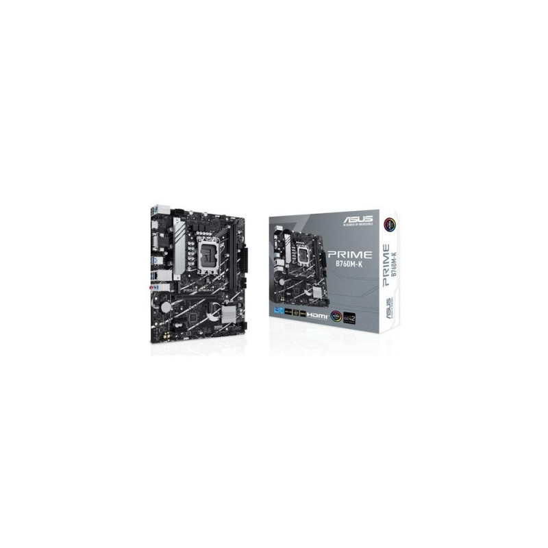 <b>B760M-K</b><br>ASUS Prime series motherboards are expertly engineered to unleash the full potential of 13th Gen Intel® Core™ Processors. Boasting a robust power design, comprehensive cooling solutions and intelligent tuning options, PRIME B760M-K provides users and PC DIY builders with a range of performance optimizations via intuitive software and firmware features.<br><br><b>FLEXIBILITY</b><br>Comprehensive controls form the foundation of the ASUS PRIME series. The PRIME B760 motherboard packs flexible tools to tune every aspect of your system, enabling performance tweaks to perfectly match the way you work to maximize productivity.<br><br><b>Intelligent Control</b><br>ASUS Intelligent Control makes your PC smart. Along with taking care of complex tuning and dynamically optimizing essential aspects of your system, it offers intelligently simplified options for newcomers to PC DIY, as well as more comprehensive features for seasoned veterans.<br><br><b>All-Around Energy Efficiency</b><br>The Power Saving function contains several settings can easily optimize power consumption and maximize energy savings. You can enable a CPU power limit, darken Aura lighting, and set the fan profile to a power saving mode. You can also toggle the Power Saver plan that is built into Microsoft Windows.ASUS PRIME B760M-K. Processor manufacturer: Intel, Processor socket: LGA 1700, Compatible processor series: Intel® Celeron®, Intel® Pentium® Gold, Intel® Core™ i3, Intel® Core™ i5, Intel® Core™.... Supported memory types: DDR5-SDRAM, Maximum internal memory: 96 GB, Memory slots type: DIMM. Supported storage drive interfaces: M.2, SATA III, Supported storage drive types: HDD & SSD, RAID levels: 0, 1, 5, 10. Ethernet interface type: 2.5 Gigabit Ethernet. Component for: PC, Motherboard form factor: micro ATX, Motherboard chipset family: Intel