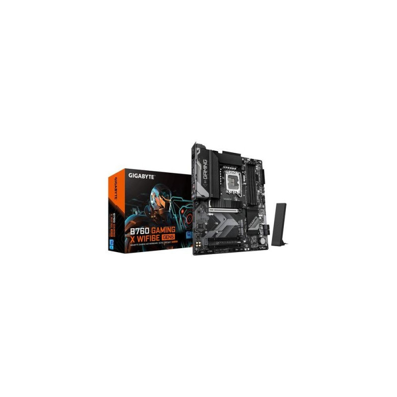 Elevate your computing experience with GIGABYTE's renowned motherboard series: AORUS, AERO, and GIGABYTE. Featuring innovative designs and advanced features, these boards offer exceptional performance and reliability. Whether you're a gamer, content creator, or professional, our series cater to your needs, ensuring uncompromising quality and cutting-edge technology.GIGABYTE B760 GAMING X WIFI6E GEN5 Motherboard - Supports 14th Gen. Intel Core CPUs, 8+1+1 phases VRM, up to 5600MHz DDR5, 3xPCIe 4.0 M.2, Wi-Fi 6E, 2.5 GbE LAN, USB 3.2 Gen 2. Processor manufacturer: Intel, Processor socket: LGA 1700, Compatible processor series: Intel® Celeron®, Intel Core i3 12th Gen, Intel Core i3 13th Gen, Intel Core i3 14th Gen, Intel.... Supported memory types: DDR5-SDRAM, Maximum internal memory: 256 GB, Memory slots type: DIMM. Supported storage drive interfaces: M.2, PCI Express 4.0, SATA III, Supported storage drive types: HDD & SSD, RAID levels: 0, 1, 5, 10. Maximum resolution: 4096 x 2304 pixels. Ethernet interface type: 2.5 Gigabit Ethernet, LAN controller: Realtek RTL8125, Top Wi-Fi standard: Wi-Fi 6E (802.11ax)