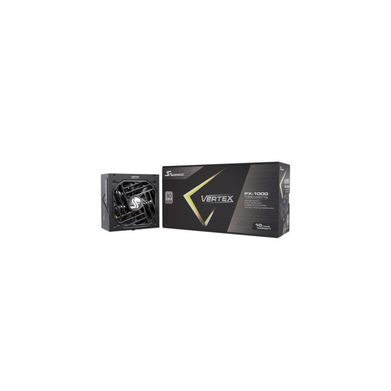 <b>80 PLUS® PLATINUM</b><br>The Vertex PX Series achieves 80 PLUS® Platinum certification with its 92 % efficiency at 50 % system load.<br><br><b>ATX 3.0 AND 16-PIN PCIE GEN 5 CABLE (12VHPWR)</b><br>Seasonic’s latest Vertex Series is designed and built to power new PC components requiring the new ATX 3.0 and PCIe 5.0 standards.<br><br><b>PREMIUM HYBRID FAN CONTROL</b><br>Seasonic’s vast experience in designing the most silent and efficient power supplies on the market was translated into the development of Hybrid Mode; a state-of-the-art fan control that enables users to keep the overall fan noise at the lowest possible level.<br><br><b>FLUID DYNAMIC FAN BEARING</b><br>High performance Fluid Dynamic Bearing (FDB) fans are designed to take advantage of the impact absorbance effects of oil. They are extremely reliable and generate considerably less operating noise and heat than ball bearing fans. The lubrication of the bearing surface reduces friction and vibration and therefore lowers overall power consumption. Due to the effortless, quieter rotations and its robust construction, this reliable fan technology also greatly increases the lifespan of the fan.<br><br><b>HOW IT WORKS</b><br>When the fan shaft rotates, high pressure oil drifts along the grooves of the bearing sleeve to generate a thin layer of lubrication between the bearing faces. As the speed increases, so does dynamic oil pressure and the shaft is lifted from the bearing to create smooth, effortless rotations. The herringbone shape of the groves helps to efficiently channel the lubricant and avert leakage.Seasonic Vertex PX-1000. Total power: 1000 W, AC input voltage: 100 - 240 V, AC input frequency: 50 - 60 Hz. Motherboard power connector: 24-pin ATX, Motherboard power cable length: 61 cm, SATA power cable length: 470,550,570,700,760,860,950 mm. Purpose: PC, Power supply unit (PSU) form factor: ATX, 80 PLUS certification: 80 PLUS Platinum. Product colour: Black, Cooling type: Active, Fan diameter: 13.5 cm. Cables included: CPU, PCIe, Peripheral (Molex), SATA