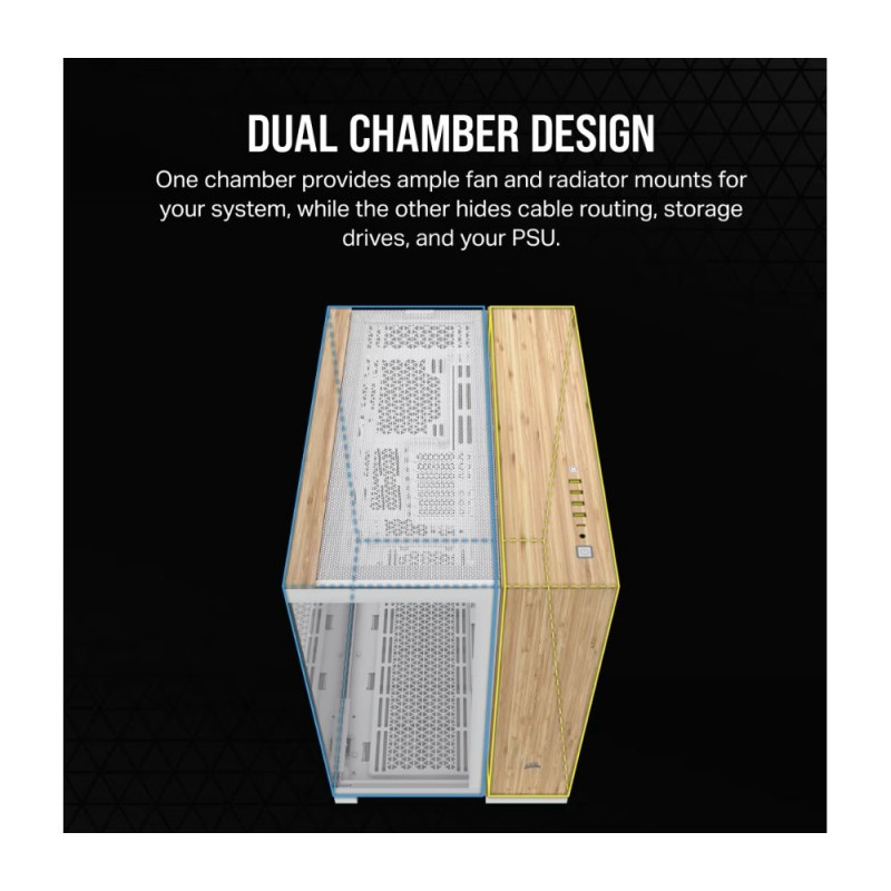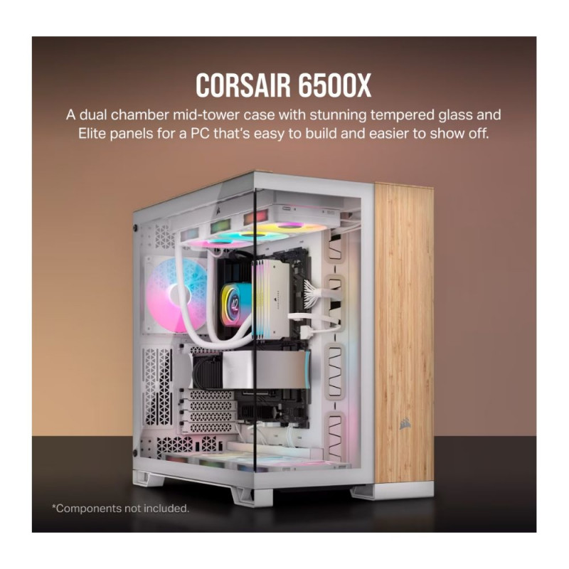 Corsair Dual Chamber PC Case | 6500X | White/Bamboo wood | Mid Tower | Power supply included No