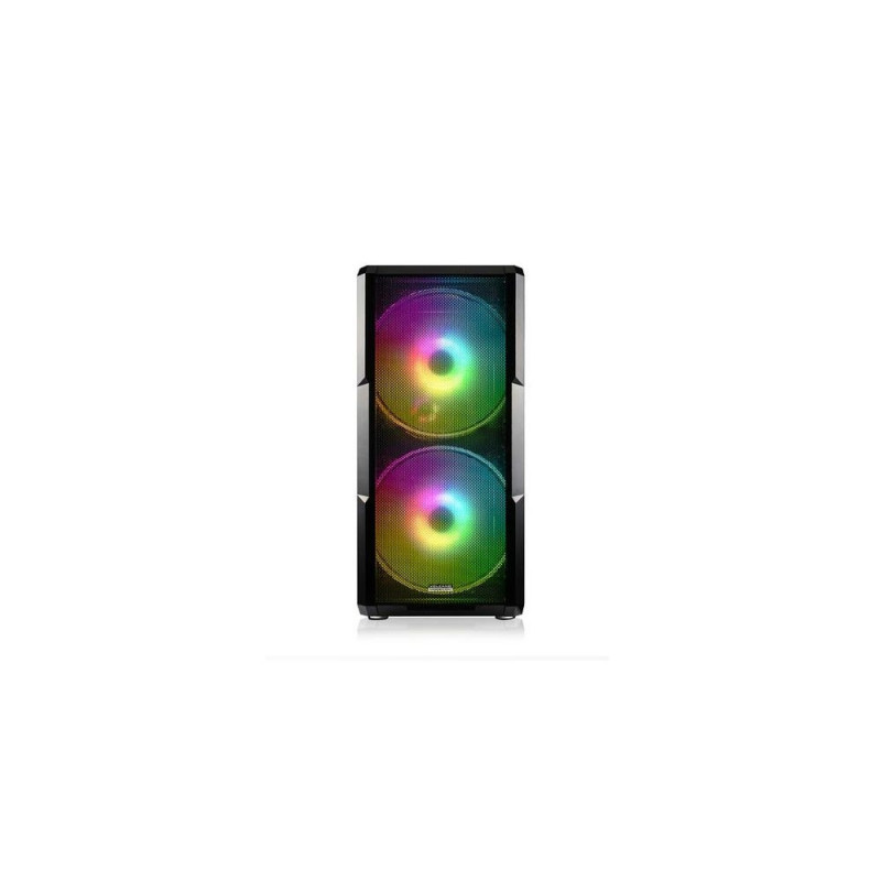 MODECOM VOLCANO AMIRANI ARGB is a spacious PC case that responds to the current trends in PC case manufacturing. It provides wide variety of options when it comes to component arrangement and attractive design. Our case comes in two color versions: black and white.<br><br><b>COOLING</b><br>Front panel of the provides great ventilation capabilities as its whole front face is made with mesh. Also side parts of the front panel have mesh installed, which additionally increase the total surface available for air intake. Both front and top panels come with magnetically installed dust filters. Bottom air intake also comes with air filter for PSU and whole system ventilation. The case if factory equipped with 3 ARGB fans. On the front air intake these are 2 fans of impressive 200 mm diameter. Third fan is installed on the back panel for air exhaust and is 120 mm. The case offers many more options for cooling the components. In place of factory equipped 2x200mm front fans, front panel allows to install 2 x 140 mm or 3 x 120 mm fans. Top panel allows for 2 x 120 mm or 2 x 140 mm fans installation. Optionally there is also possibility to install 2 x 120 mm fans on top of PSU cover.<br>When it comes to liquid cooling systems, our case allows for installation of 240/280 or 360 mm radiators on front panel, 240/280 mm radiators on top and 120 mm radiator on the back panel.<br>Our case comes with ARGB controller that allows to connect up to 6 fans with 3 pin ARGB 5V + 3 pin fan connectors.<br><br><b>CONVENIENCE</b><br>Our PC case comes with several solutions that improve use experience. On the top of the case there are conveniently accessible 2 x USB 3.0 port and 1 x USB Type C, along with audio ports and power on, LED control switches. For even more comfortable control of fan backlight and speed we’ve included remote control and an option to use motherboard ARGB ports that are becoming more frequently available.<br><br><b>SSD/HDD INSTALLATION</b><br>MODECOM VOLCANO AMIRANI is equipped in several storage installation options. It comes with HDD bracket that can be found underneath PSU cover. It provides space to install up to 2 x 3.5” HDD. On the back of motherboard tray there is also bracket for 2x2.5” SSD/HDD installation. Such bracket can be also found on top of the PSU cover. In addition you may also use it to install 3.5” HDD.<br><br><b>SPACE ARRANGEMENT</b><br>We’ve included special bracket to allow vertical installation of your GPU. It is installed in place of standard expansion slots. What is important, such location allows significant space for GPU ventilation as the there is quite some space from GPU to the tempered glass side panel. On the other side there is enough space left on the right side of the case for cable management. We have also included velcro cable ties for additional ease of arranging the cables of your system.<br><br><b>EXPANSION SLOTS</b><br>All of the expansion slot covers are ventilated and installed with screws which means they can be removed without any hassle.<br><br><b>CABLE MANAGEMENT</b><br>Our case is equipped with rubber flanges for cable entry holes. The rubber sealing ring is designed to protect the cables from damage.Modecom AMIRANI ARGB. Form factor: Midi Tower, Type: PC, Product colour: Black. Power supply location: Bottom, Supported power supply form factors: ATX. Front fans installed: 2x 200 mm, Front fans diameters supported: 120,140,200 mm, Rear fans installed: 1x 120 mm. Supported HDD sizes: 2.5,3.5". Width: 215 mm, Depth: 455 mm, Height: 475 mm