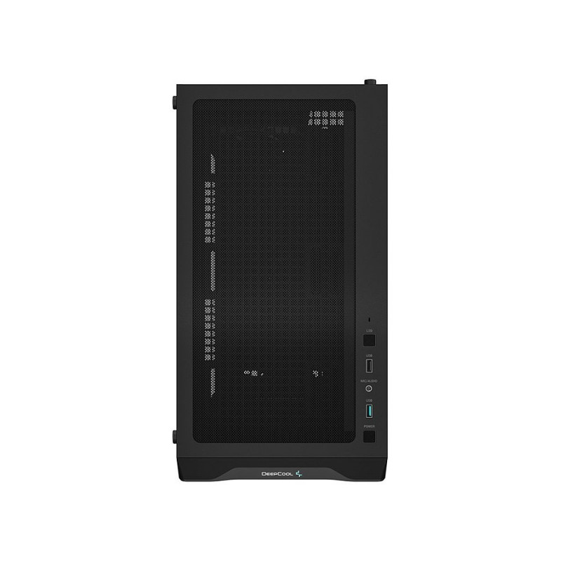 DeepCool CC360 ARGB. Vormifaktor: Mini Tower, Tüüp: PC, Toote värvus: Must. Toiteallika paigutus: põrandal, toetatud toiteallika vormifaktorid: ATX, PS2. Paigaldatud esipaneeli ventilaatorid: 2x 120 mm, toetatud esipaneeli ventilaatorite läbimõõt: 120, 140 mm, paigaldatud tagumine ventilaator: 1x 120 mm. Toetatud kõvaketta suurused: 2,5", 3,5". Laius: 215 mm, sügavus: 418 mm, kõrgus: 431 mm.
