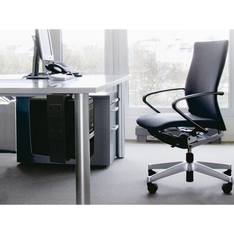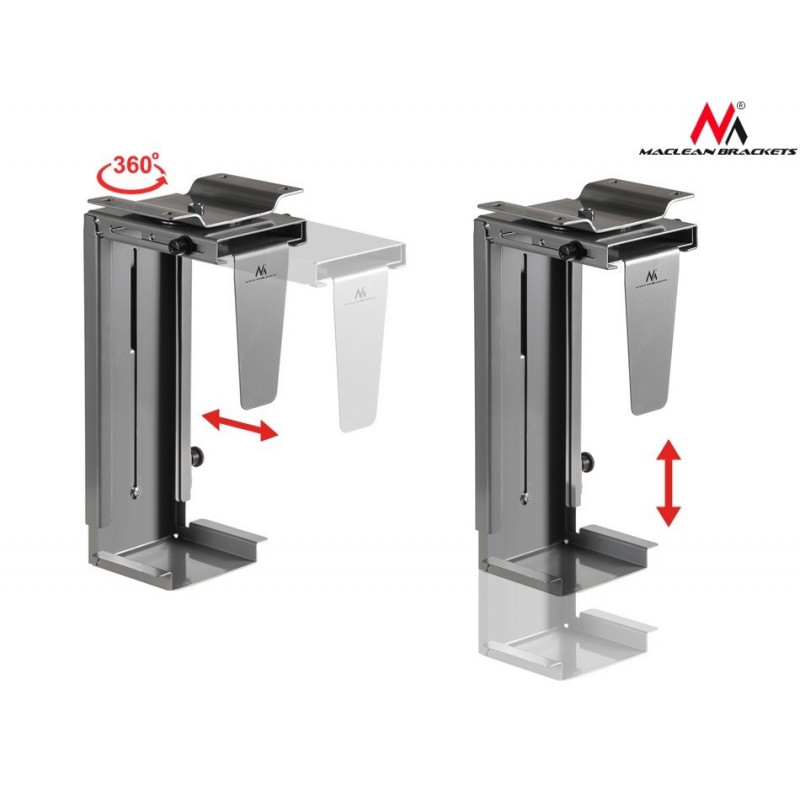 Maclean MC-713 on mõeldud arvuti vertikaalseks paigaldamiseks laua alla. See on ideaalne optimaalse ruumi kasutamiseks. Maclean MC-713 hoidik suurendab vaba ruumi laual ja samal ajal hoiab arvuti põrandal, eemal jalgadest, tolmust ja staatilisest elektrist. Kõige tähtsam on see, et arvuti on ikka käeulatuses. Maclean MC-713 hoidik sobib igasuguse kujuga korpusele, mille maksimaalne laius on 203 mm.