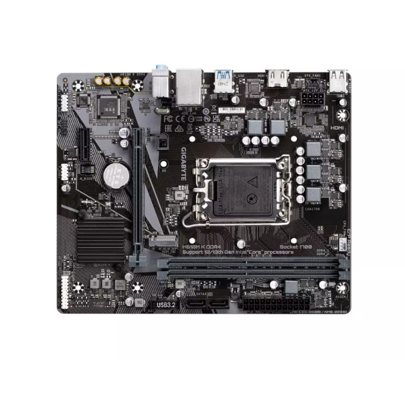 The Gigabyte H610M K DDR4 motherboard is designed for home, office, and budget gaming PCs using Intel 12th and 13th Gen processors (Alder Lake & Raptor Lake). The Micro ATX form factor fits compact cases and supports DDR4 memory up to 64GB at up to 3200 MHz, fast storage via M.2 NVMe, and graphics cards via PCIe 4.0 x16. Features USB ports, Gigabit LAN, high-quality 7.1 channel audio, and extensive fan control and protection functions.