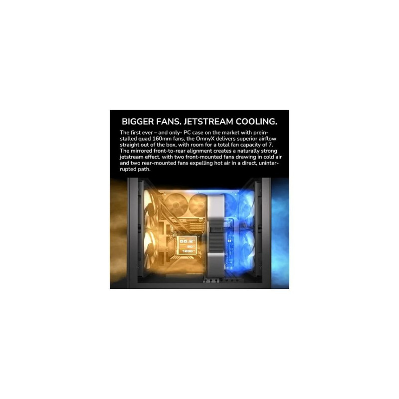 COUGAR korpus Midi-Tower OmnyX, ARGB, must. Vormitegur: Midi Tower, tüüp: PC, toote värv: must. Paigaldatud ventilaatorid (ees): 2x 160 mm, toetatud esikülje ventilaatorite läbimõõt: 120,140,160 mm, toetatud külgmiste ventilaatorite läbimõõt: 120 mm. Toetatud kõvaketta suurused: 2.5,3.5". Laius: 300 mm, sügavus: 470 mm, kõrgus: 520 mm. Pakendi laius: 390 mm, pakendi sügavus: 635 mm, pakendi kõrgus: 575 mm