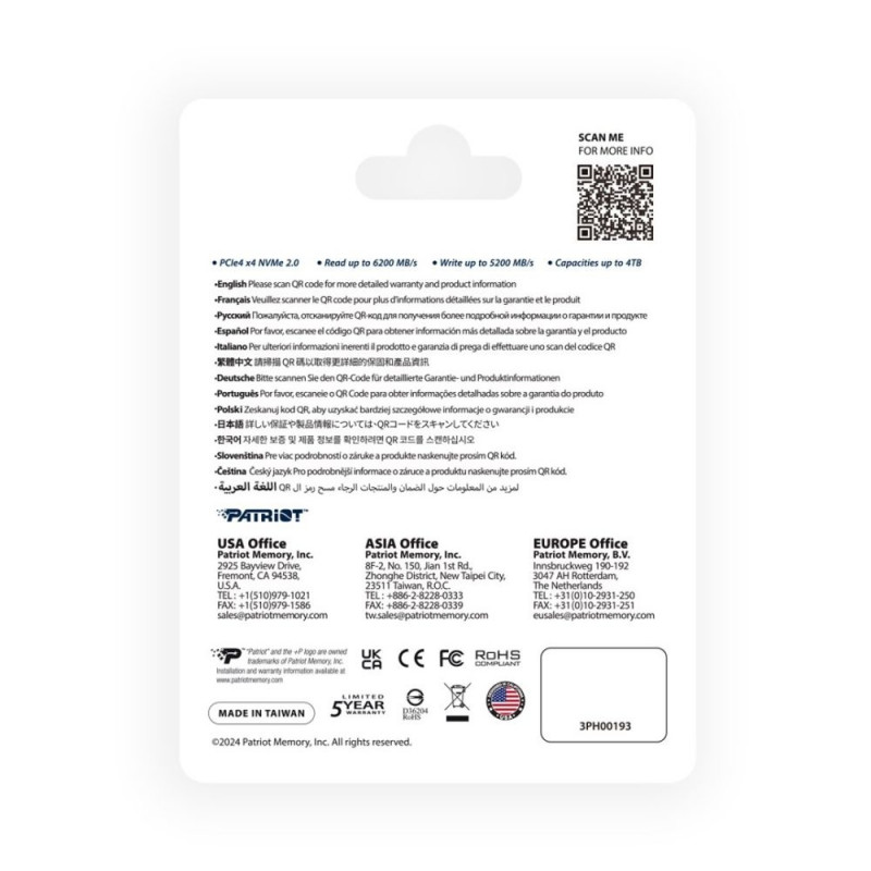 M.2 NVMe SSD Patriot P400 V4 1TB 5000MB/s Read 6000MB/s Write