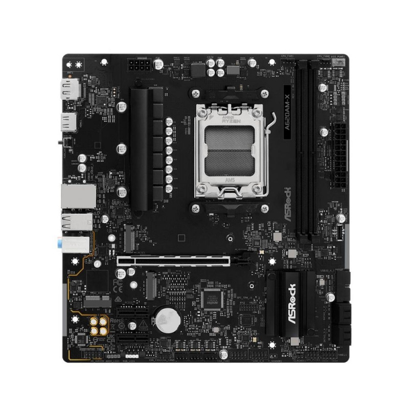 | Summary | Asrock A620AM-X. Processor manufacturer: AMD, Processor socket: Socket AM5, Compatible processor series: AMD Ryzen 7000 Series, AMD Ryzen 8000 Series, AMD Ryzen 9000 Series. Supported memory types: DDR5-SDRAM, Maximum internal memory: 128 GB, Memory slots |