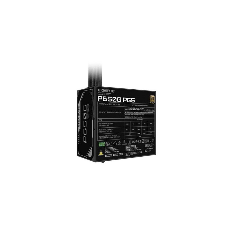Ensure reliable and efficient power delivery with GIGABYTE power supplies. Designed for peak performance and durability, our PSUs offer stable and consistent energy to power your high-performance systems. With advanced protections and high-quality components, GIGABYTE power supplies provide the confidence you need for seamless, uninterrupted computing experiences.GIGABYTE P650G PCIE 5.1 Power Supply - PCIe 5.1, 80 PLUS Silver, 120mm Fan, ATX 3.1 compatible, EU Plug. Total power: 650 W, AC input voltage: 100 - 240 V, AC input frequency: 50/60 Hz. Motherboard power connector: 20+4 pin ATX, Motherboard power cable length: 60 cm, SATA power cable length: 120,500 mm. Purpose: PC, Power supply unit (PSU) form factor: ATX, 80 PLUS certification: 80 PLUS Gold. Product colour: Black, Cooling type: Active, Fan diameter: 12 cm. Width: 140 mm, Depth: 150 mm, Height: 86 mm