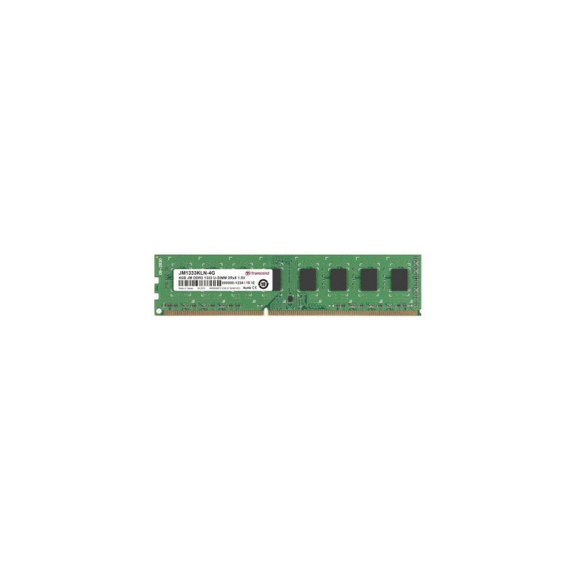 Designed for desktop computer use, our JetRam memory modules are manufactured with true ETT grade, brand-name DRAM chips, which are required to meet Transcend’s stringent requirements for performance and stability, including rigorous testing in extreme environments. These modules offer a compelling combination of excellent compatibility and fully-tested reliability at an attractive price, which makes them the preferred upgrade memory choice of distributors and computer retailers. Before production, all materials used in the manufacturing process must first pass through strict qualification testing across many different platforms and operating system versions. Moreover, to assure ultimate cross-platform compatibility and stability, each module is tested in many different system configurations that include mainstream motherboards and popular software programs.<br><br>An economical memory upgrade option for most popular desktop and notebook models out there, Transcend's DDR3 DRAM modules are engineered with the finest chips available, at the same time stringently tested to ensure they deliver optimal speeds, endurance, reliability, and compatibility across platforms.<br><br><b>For desktops and laptops</b><br>Transcend offers a comprehensive range of DDR3 standard long-DIMMs and compact SO-DIMMs to enhance memory bandwidth for desktops and laptops alike. All modules are tested across various motherboard platforms and operating systems with achieving maximum compatibility in mind.<br><br><b>Revive your system</b><br>Upgrading your DRAM is likely one of the simplest and most economic way to bring an aging, sluggish computer back to life. Instantly benefit from increased speeds and work efficiency with a timely upgrade.<br><br><b>Quality chips fully tested for reliability</b><br>Selected from only the finest, brand-name DRAM chips available, Transcend’s memory modules undergo countless in-house stress tests and evaluations to ensure they deliver absolute quality and reliability.Transcend JetRam DDR3-1333 U-DIMM 4GB. Component for: PC/Server, Internal memory: 4 GB, Memory layout (modules x size): 2 x 8 GB, Internal memory type: DDR3, Memory clock speed: 1333 MHz, Memory form factor: 240-pin DIMM, CAS latency: 9