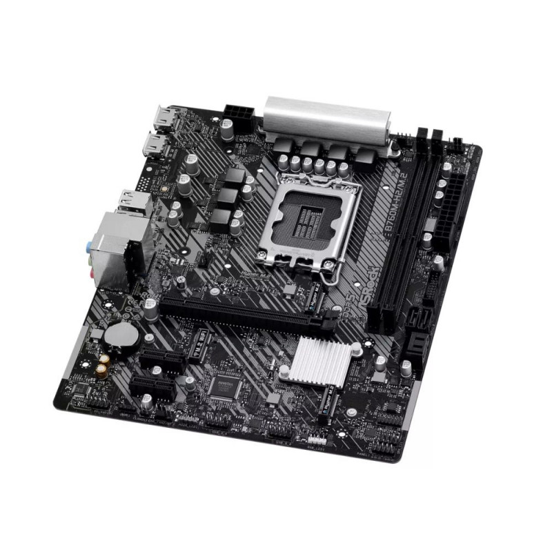 A Micro-ATX motherboard built on the Intel B760 chipset, designed for Intel 12th, 13th and 14th Gen processors. It supports DDR4 memory, an M.2 NVMe slot, essential expansion options and integrated video outputs when using CPUs with onboard graphics. Suitable for home and office systems requiring stable and modern functionality.