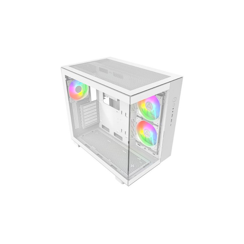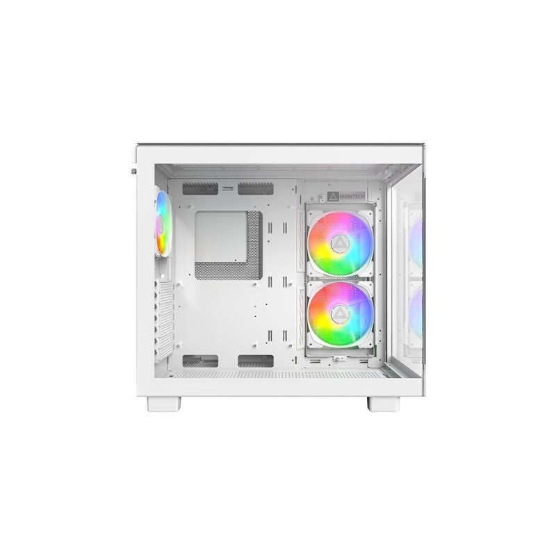 Montech KING 65 PRO. Vormifaktor: Tower, Tüüp: PC, Toote värvus: Valge. Küljele paigaldatud ventilaatorid: 2x 140 mm, Toetatud külgventilaatorite läbimõõt: 120, 140 mm, Tagaküljele paigaldatud ventilaatorid: 1x 120 mm. Toetatud kõvaketta suurused: 3,5", SSD vormifaktor: 2,5". Laius: 475 mm, Sügavus: 300 mm, Kõrgus: 442 mm. Pakendi laius: 502 mm, Pakendi sügavus: 384 mm, Pakendi kõrgus: 559 mm.
