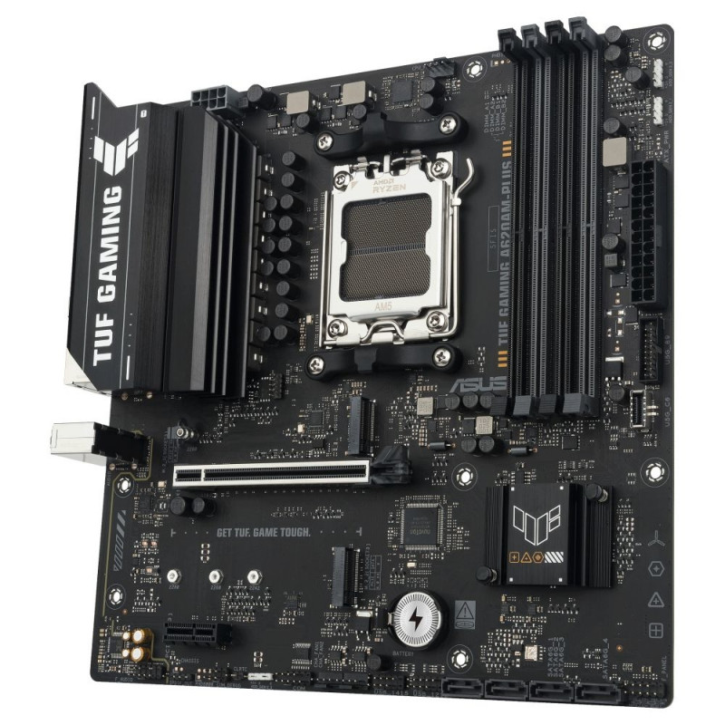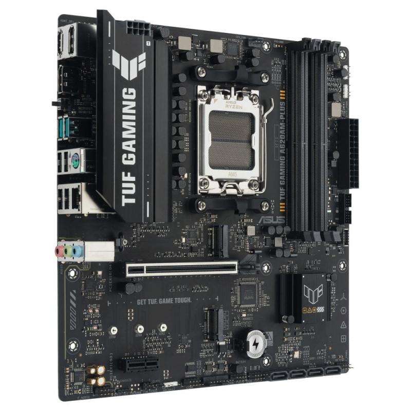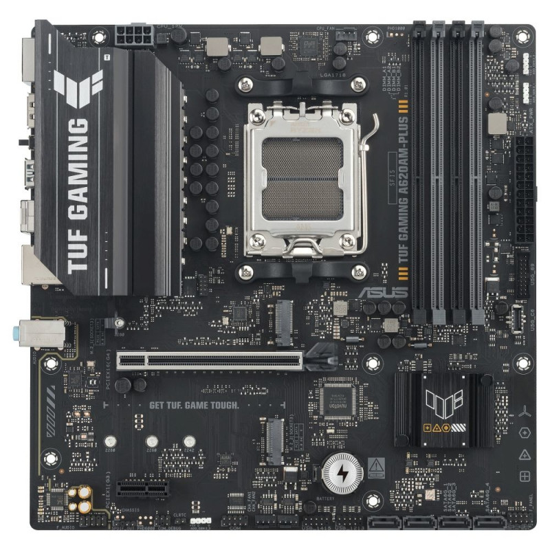ASUS TUF GAMING A620AM-PLUS. Protsessori tootja: AMD, protsessori sokkel: AM5 sokkel, ühilduvad protsessorid: AMD Ryzen 7000 seeria, AMD Ryzen 8000 seeria, AMD Ryzen 9000 seeria. Toetatud operatiivmälu: DDR5-SDRAM, maksimaalne RAM-mälu: 256 GB, mälu tüüp: DIMM. Toetatud andmekandjate liidesed: M.2, SATA III, toetatud andmekandjad: HDD & SSD, RAID tasemed: 0, 1, 5, 10. Etherneti liidese tüüp: 2.5 Gigabit Ethernet. Komponent: PC jaoks, emaplaadi vormitegur: micro ATX, emaplaadi kiibistiku perekond: AMD.