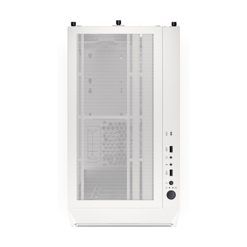 Arx 500 White ARGB I/O-paneel asub ülemise paneeli eesosas ning on varustatud praktilise valikuga portidest. Seal on kaks USB-A 3.2 Gen 1 porti (kuni 5 Gbps) ja kaks 3,5 mm helipesa kõrvaklappide, kõlarite või mikrofoni jaoks. Lisaks on olemas kaasaegne, ülikiire USB-C 3.2 Gen 2 port (kuni 10 Gbps) – võimaldades hõlpsasti ühendada seadmeid, mis vajavad seda tüüpi porti, ilma adapterit kasutamata.