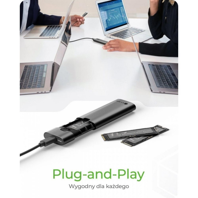 Tööriistavaba paigaldus kiireks seadistamiseks andmeedastuskiirusega kuni 10 Gbps. Mõeldud tõhusaks failihalduseks ja andmetöötluseks. Ühildub SSD suurustega 22x 30/42/60/80 mm.