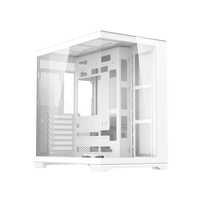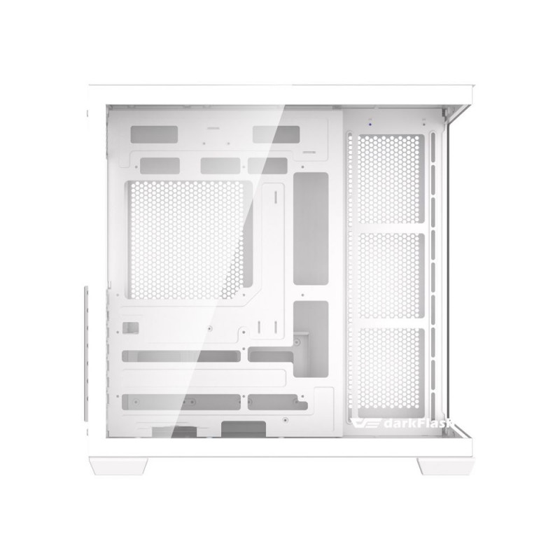 DarkFlash C280 on avar arvutikorpus, mis on loodud keerukate konfiguratsioonide ja komponentide muljetavaldava esitlemise jaoks. See toetab E-ATX, ATX, Micro-ATX ja ITX emaplaate, samuti kuni 420 mm pikkuseid graafikakaarte ning kuni 155 mm kõrguseid protsessori jahuteid. See annab sulle suure vabaduse komponentide valimisel. 443 × 277 × 426 mm disain on valmistatud SPCC lehtmetallist ja seda täiendavad karastatud klaasist paneelid, mis loovad kindla ja kaasaegse välimuse.