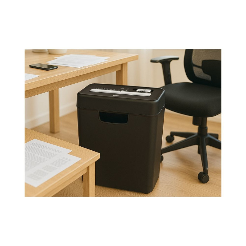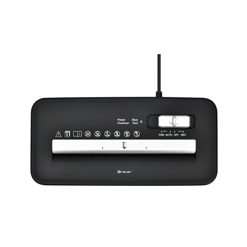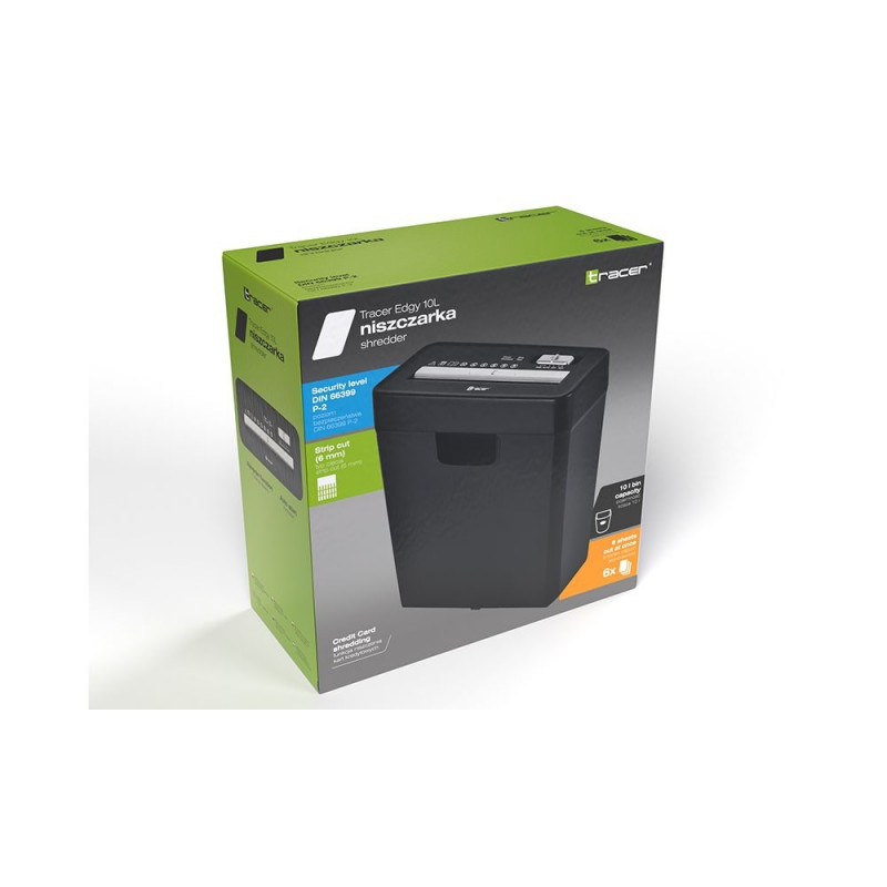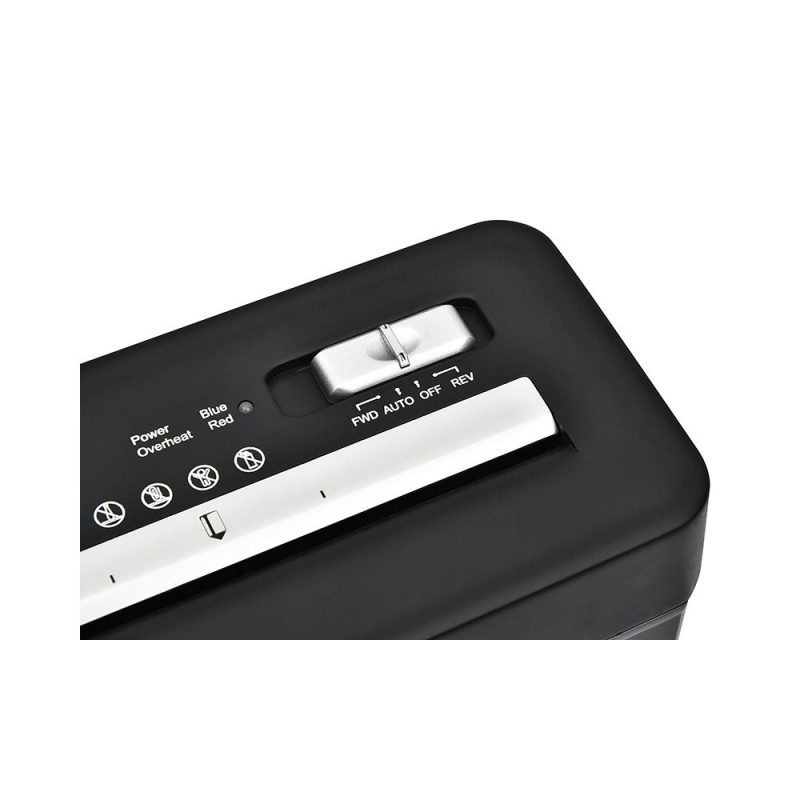 Purustab korraga 6 lehte DIN 66399 P-2 turvatase Ribade lõikamine 6 mm Tagurpidi funktsioon Automaatne käivitamine Krediitkaartide purustamise võimalus 10-liitrine prügikasti maht