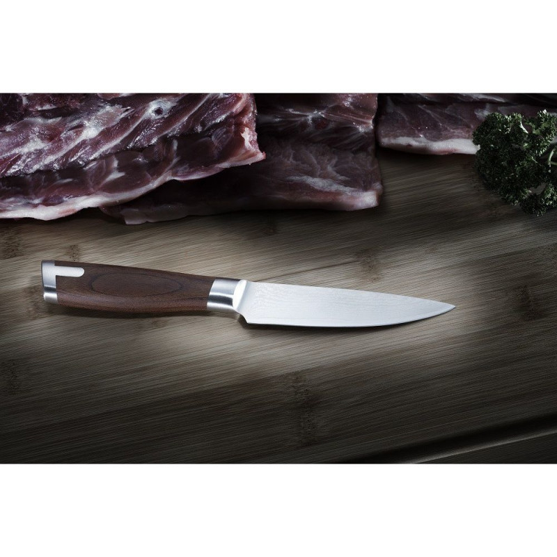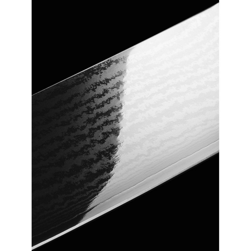 Sepistatud Tafeku damaskuse terasest 67 erineva kihiga tera, – ülim kõvadus, paindlikkus ja pikk eluiga.